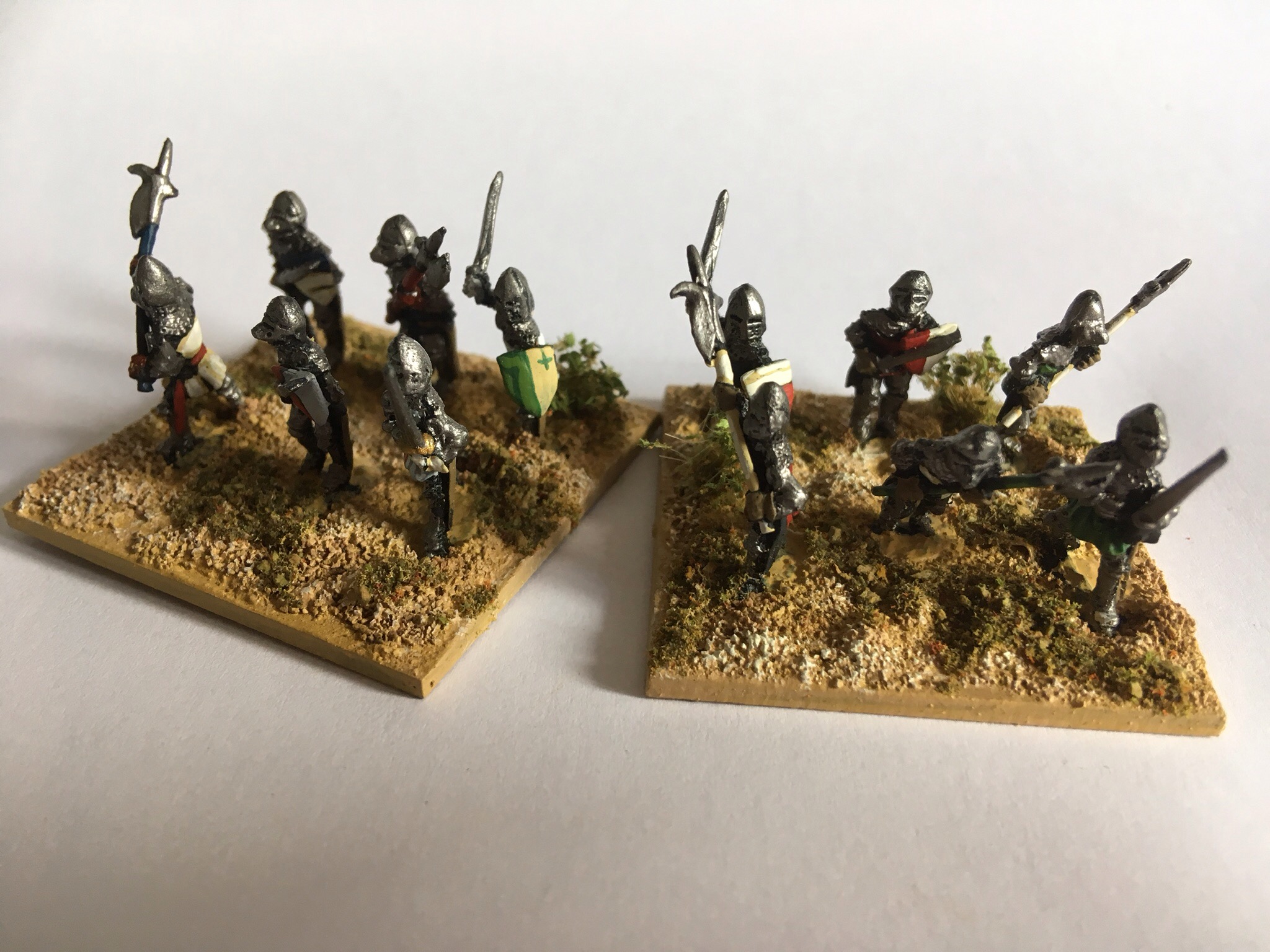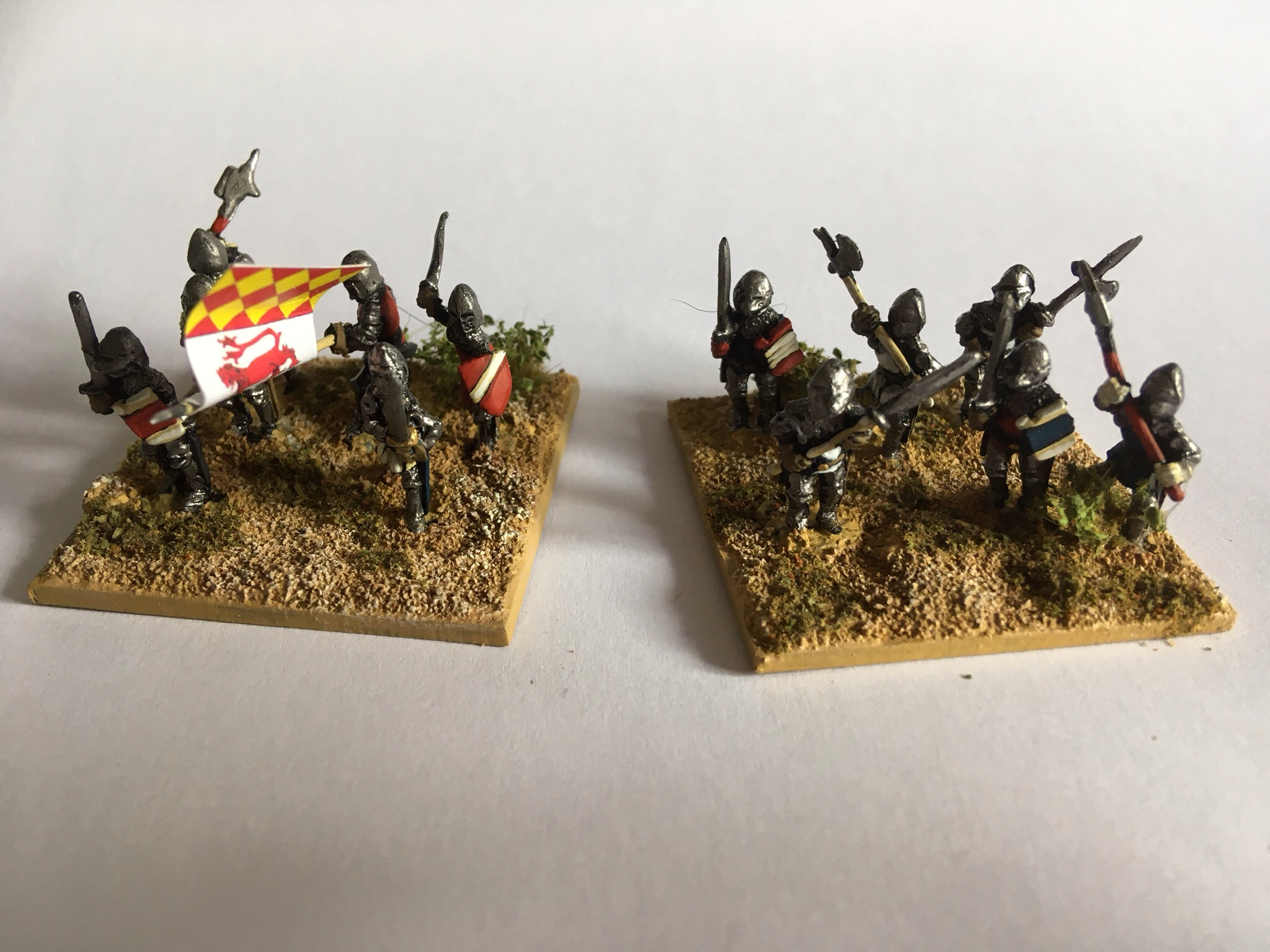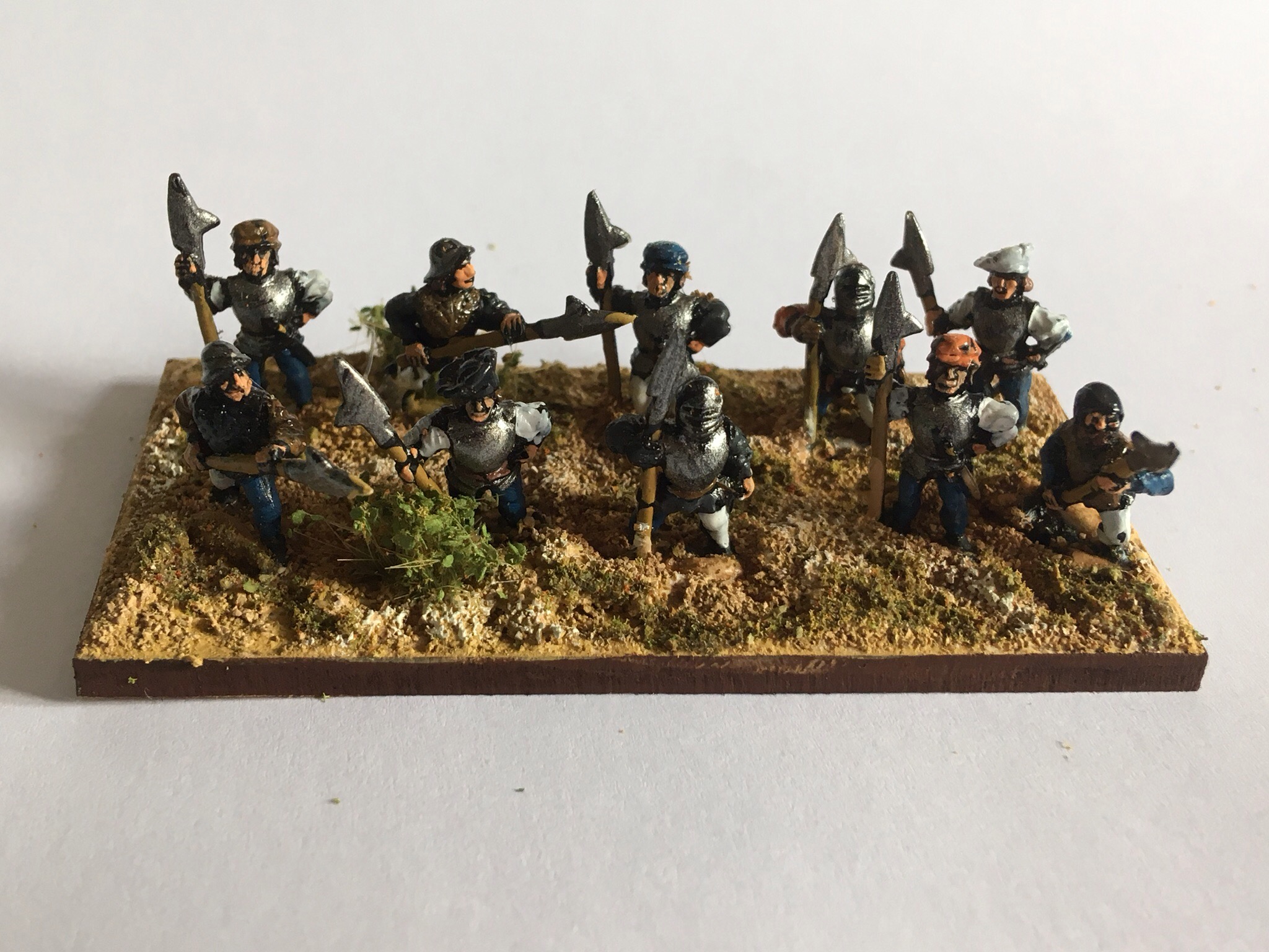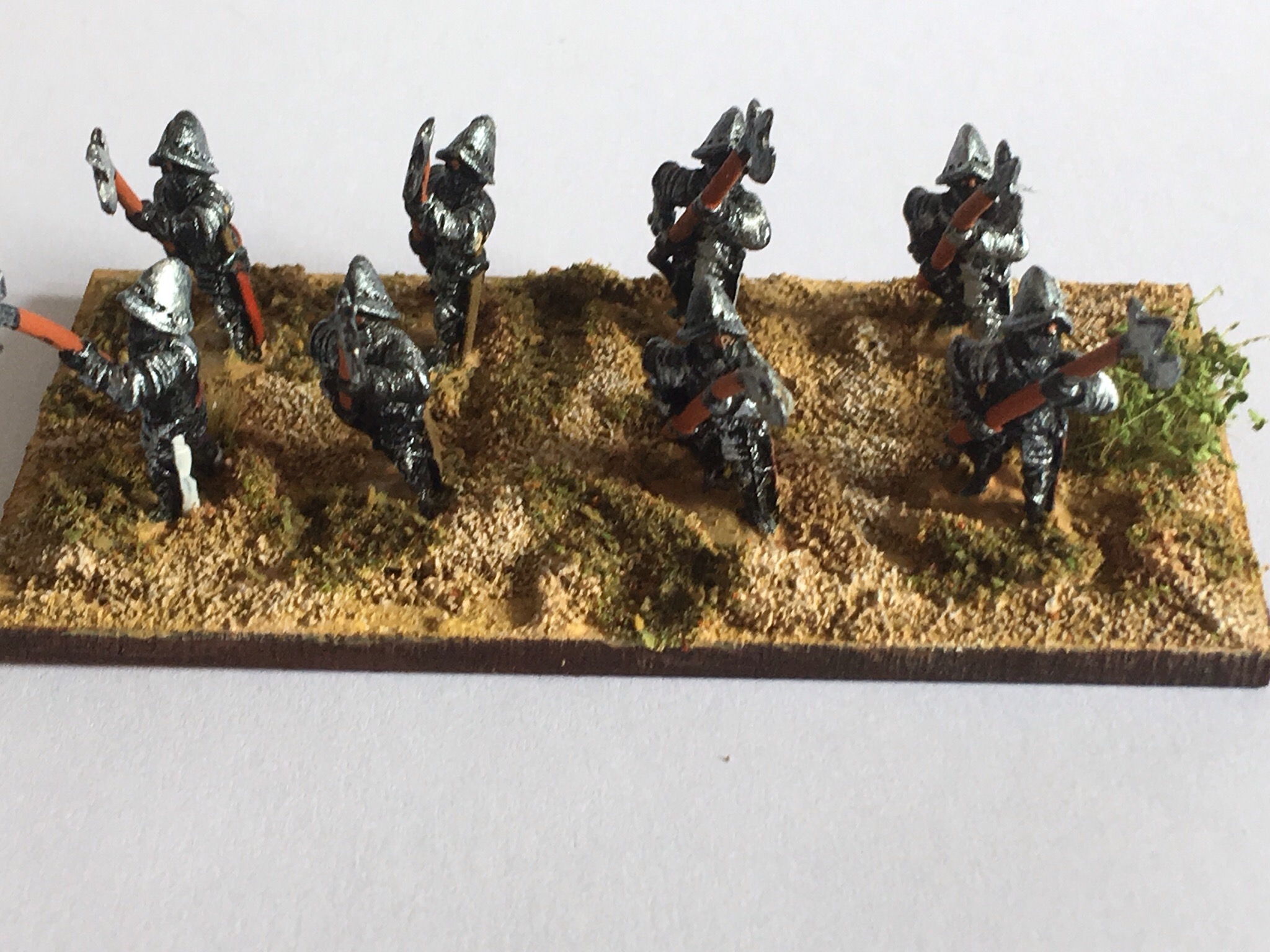 Four big bases 80mm by 40mm- French blades or Henry Tudor’s mercenaries at a pinch (above)