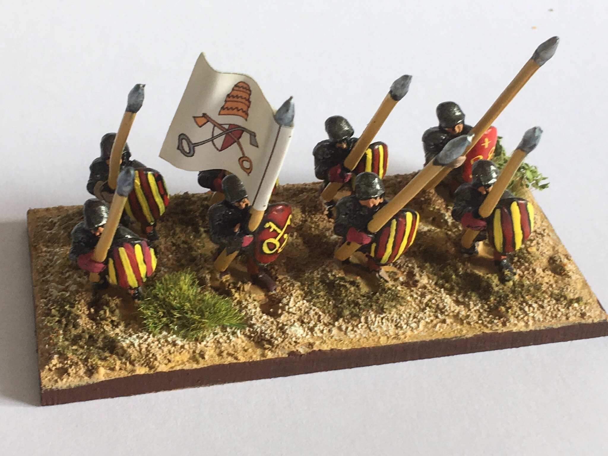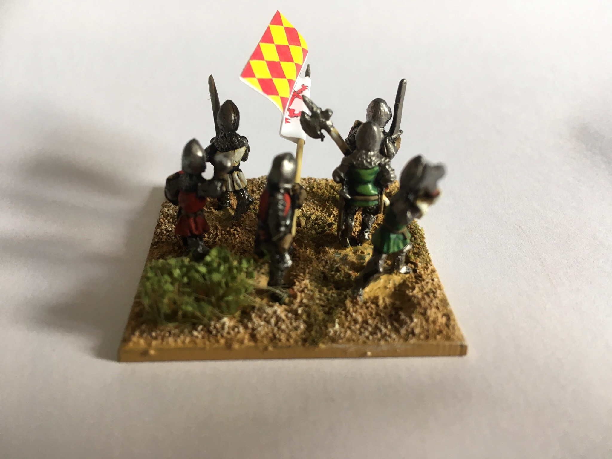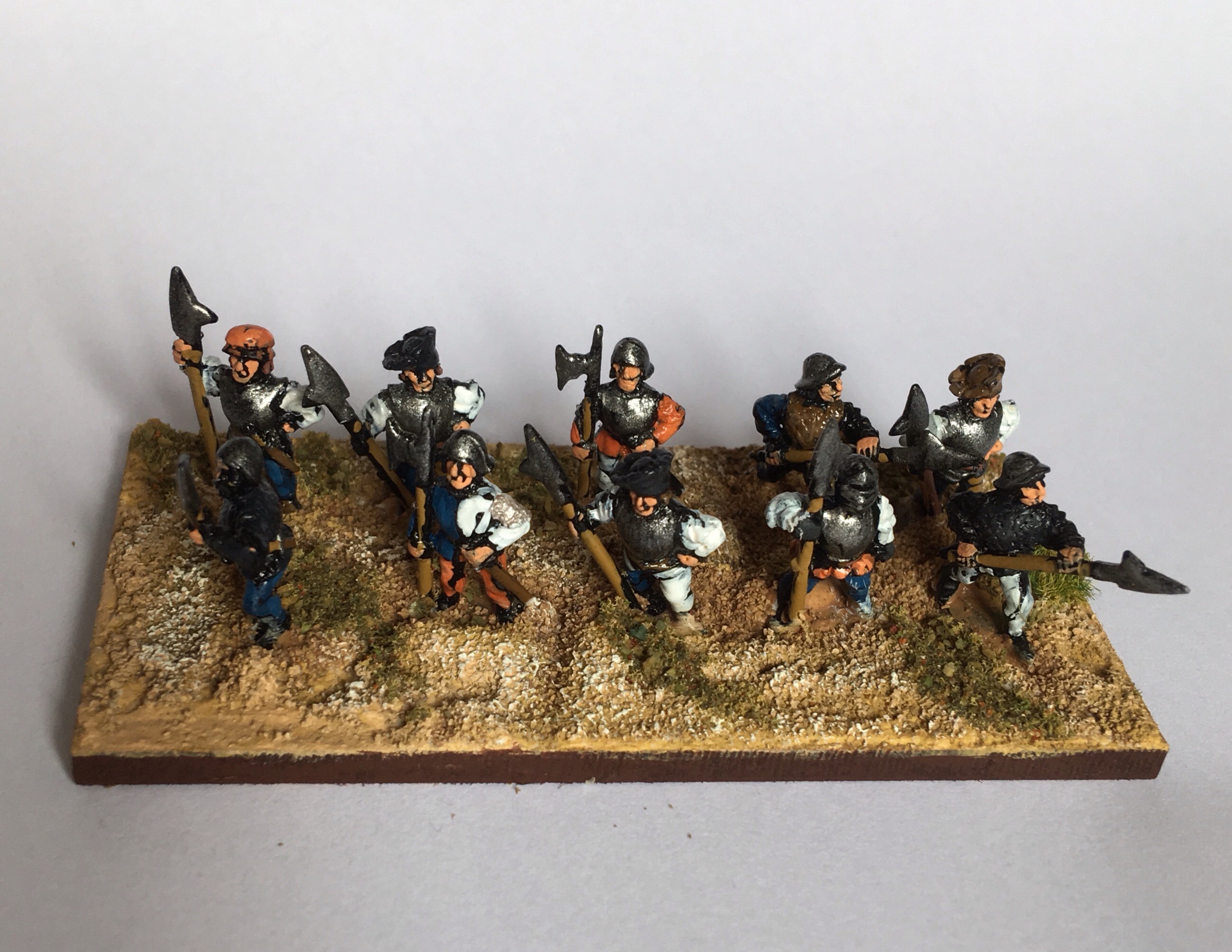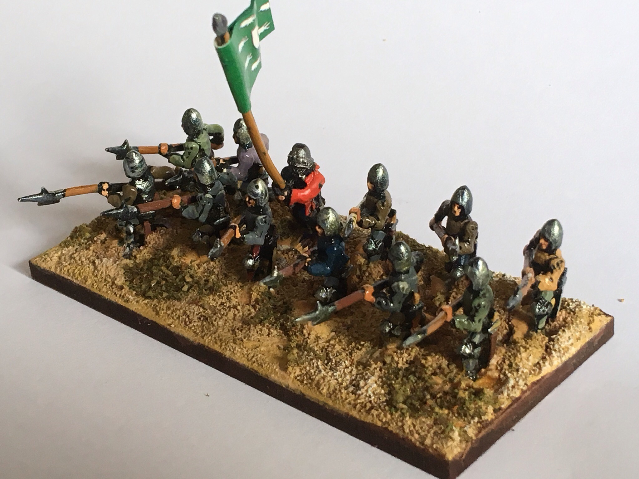 Four big bases 80mm by 40mm- French blades or Henry Tudor’s mercenaries at a pinch (above)