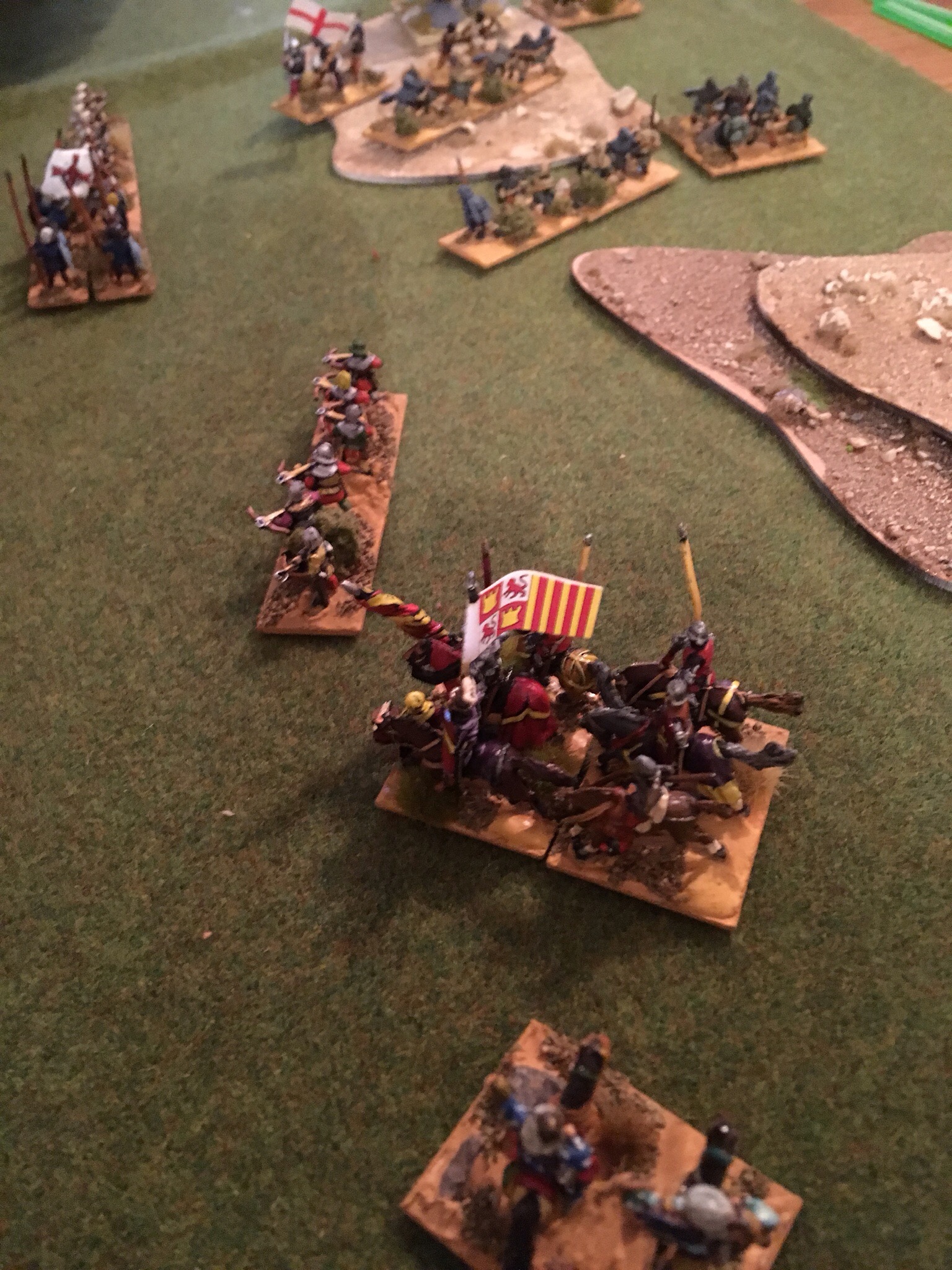 To some gamers it’s all about tournaments and intense competition. Increasingly my enjoyment from the hobby comes from a less frantic atmosphere. What could be better than locking the children in the garden, sending the wife to her small bore rifle practice and setting up a mini campaign for gentlemen to decide the fate of mini nations. I’m joking of course, the kids are lost to Fortnite babysitting services in their lair but the point remains, with De Bellis Antiquitatis it is quite possible to get three games into an evening. Our games were loosely based in Sicily around 1300 A.D. and looked to include a number of the plausible competitors for the island. It is a place and time which we often come back to and if you would like to know more, I heartily recommend Steven Runciman’s Classic, “The Sicilian Vespers”.