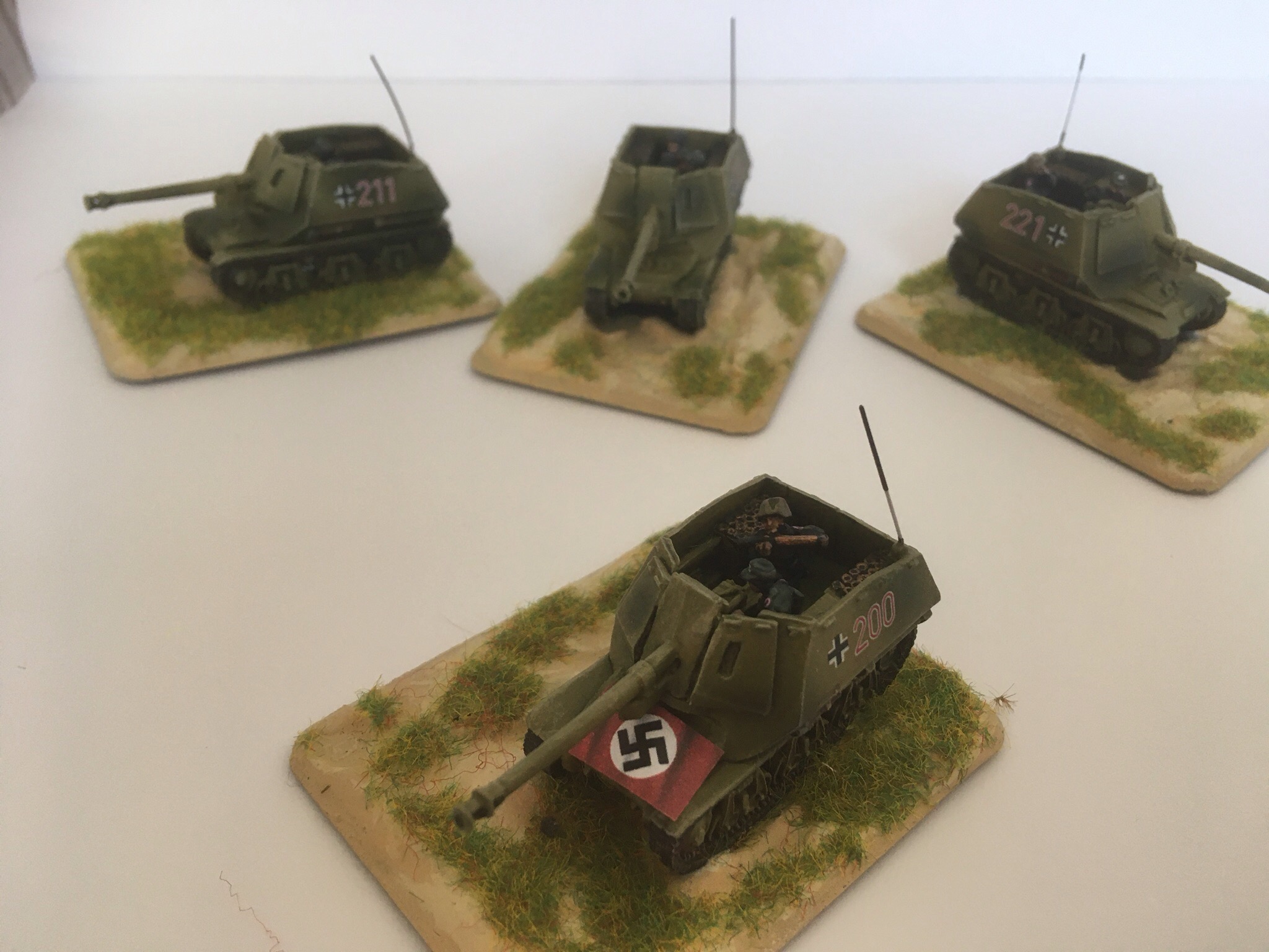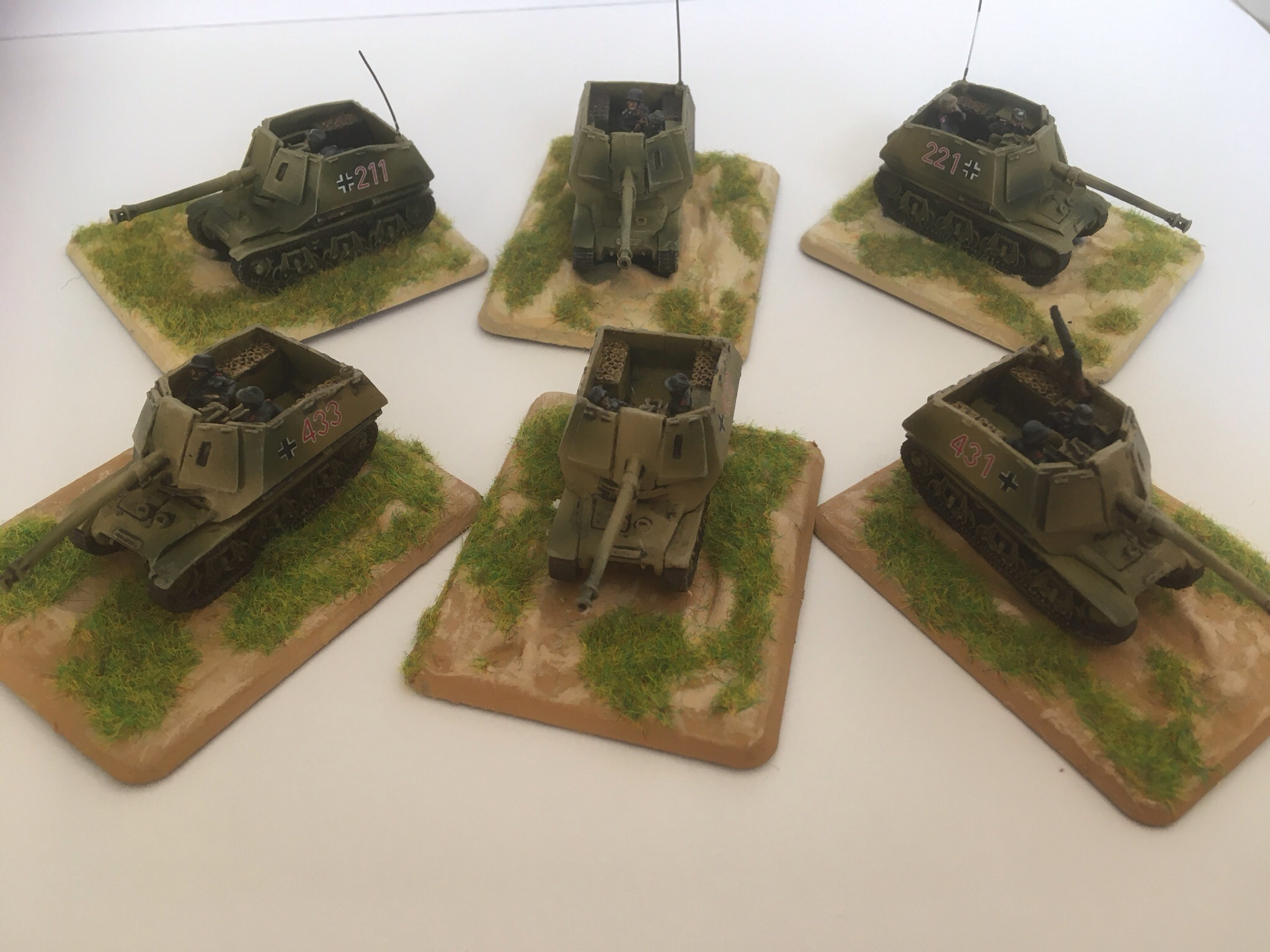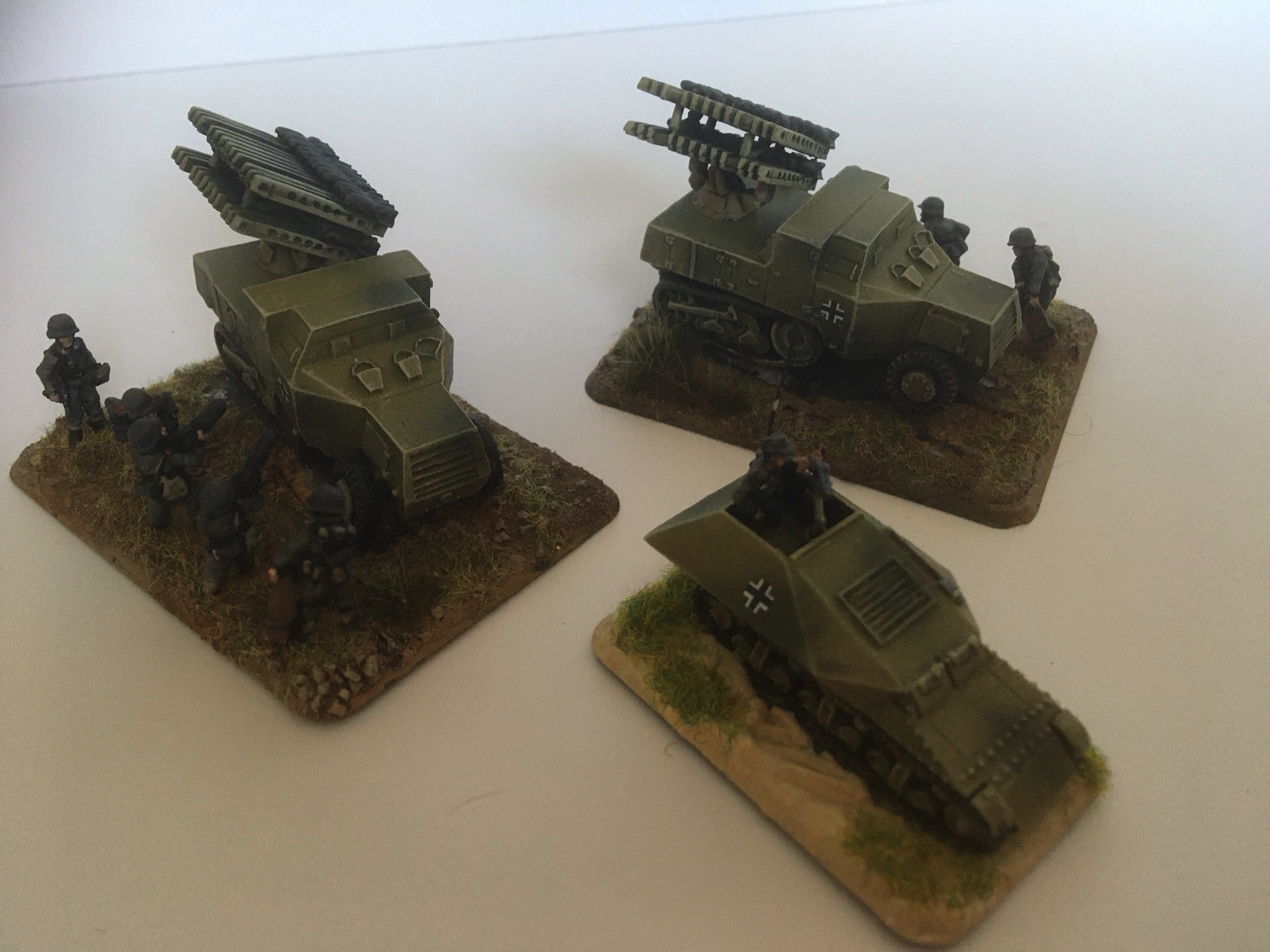 I also collected six of the 10.5 cm variant, with its awesome range, the Allies will pay dearly. To add to their discomfort I have two Reihenwerfer. I should really change the base to match the others but maybe after Christmas.