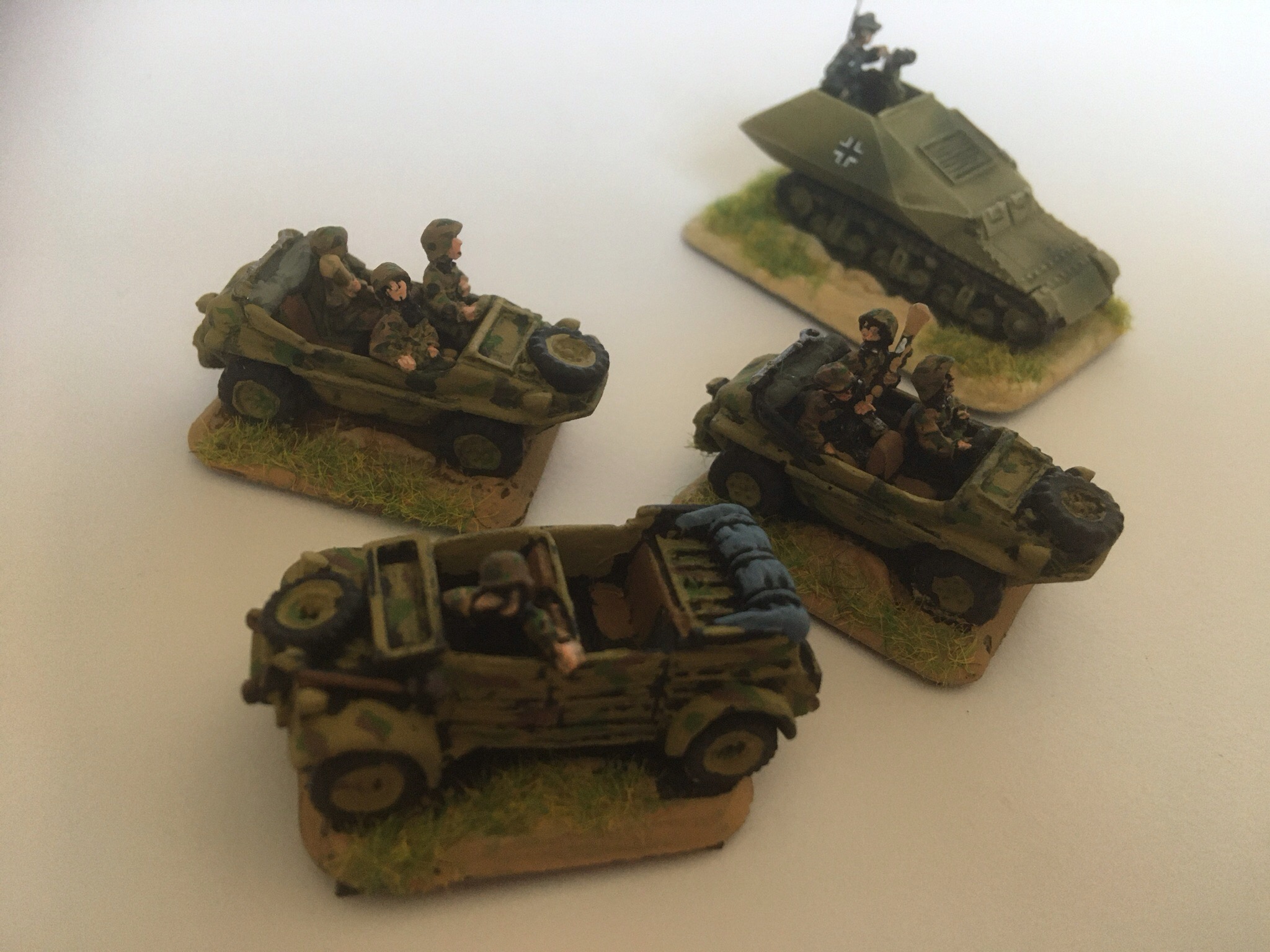 In the latest incarnation of Flames of War the Division gets HEAT rounds that do not suffer over range and, the “salvo” rule which gives batteries a ten inch bombardment. The Hotchkiss (7.5cm) packs the army standard anti-tank weapon. It may not withstand return fire but as a mobile defensive weapon , it is awesome.