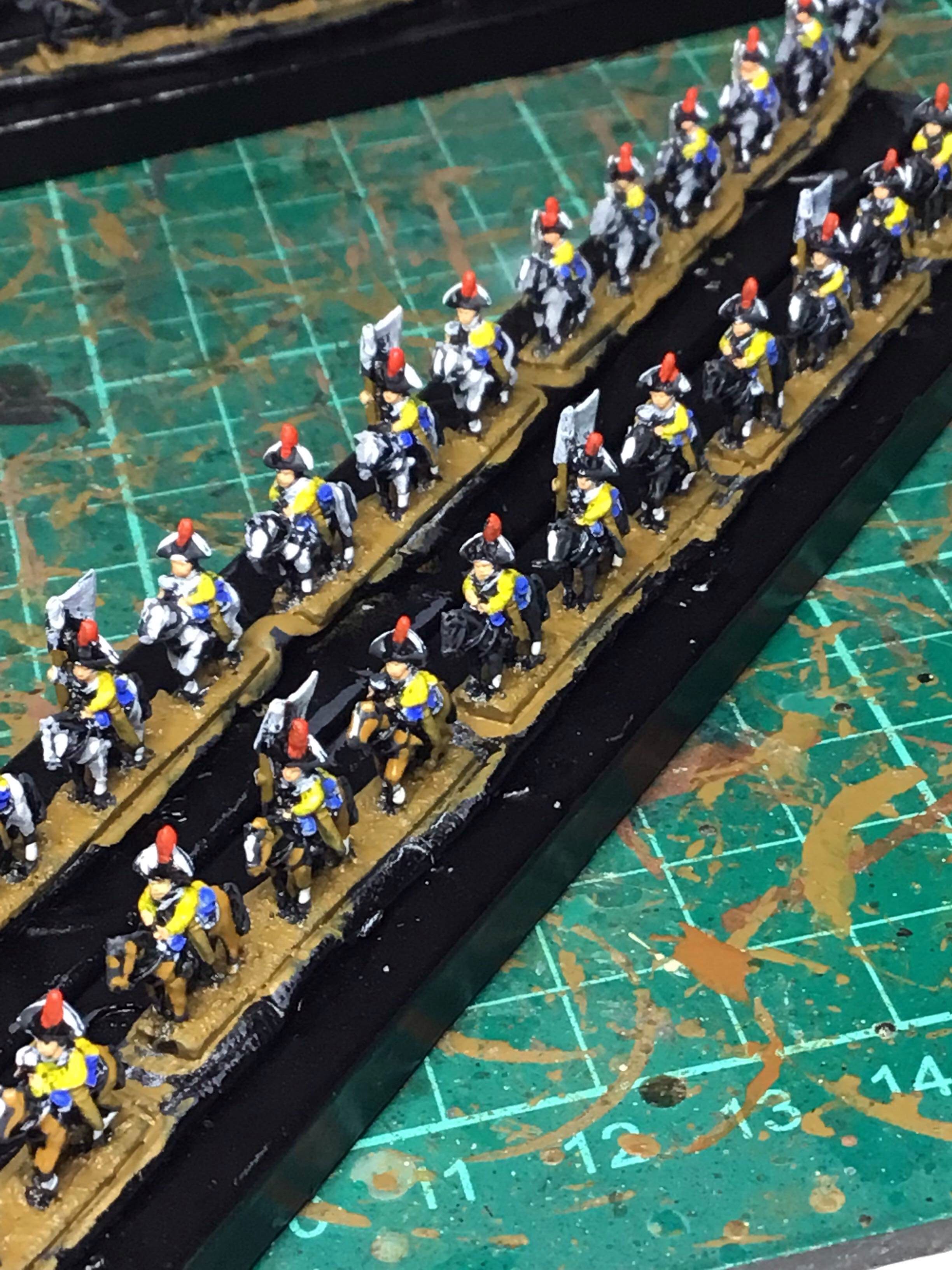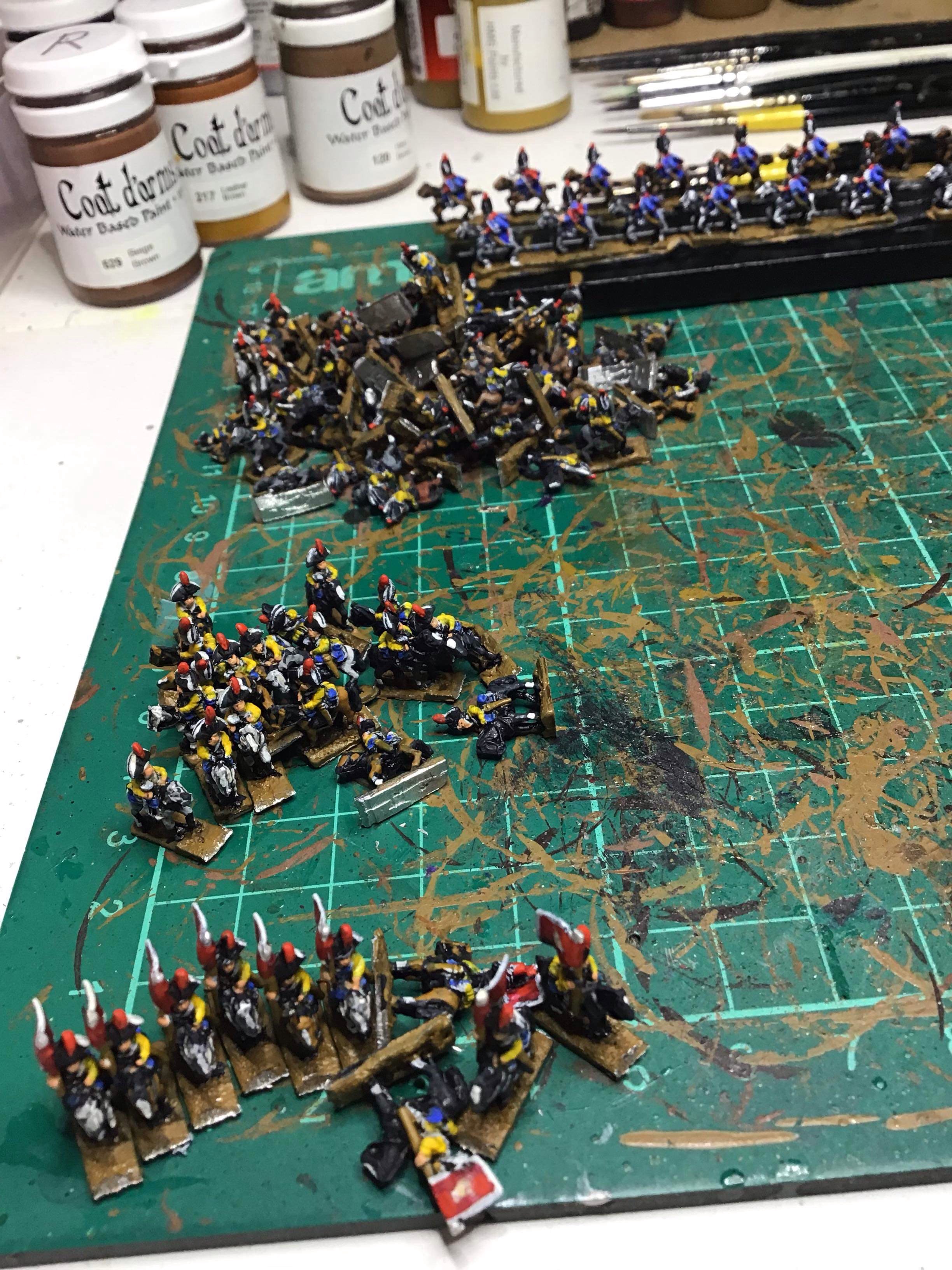 Stage eleven- I then do a load of the remaining horses in brown, leaving a few black for variety. If there are a lot I often use a couple of shades of brown to mix it up a bit.