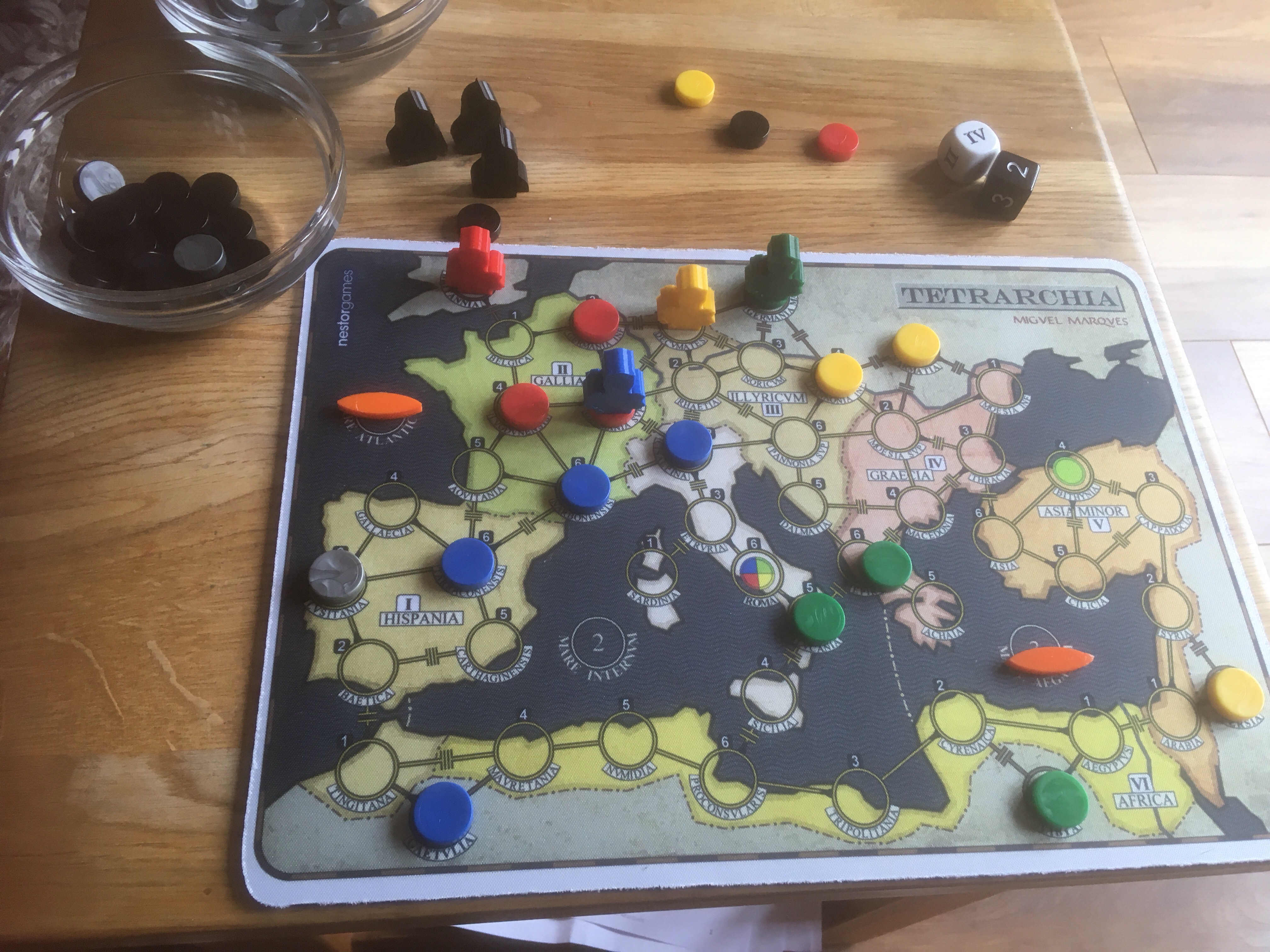 A recent survey by German historians list over two hundred reasons for the “Fall of Rome”. To the older explanations of population migrations, corruption and Christianity, have been added sea level change, class warfare and pacifism. After playing Nestorgames’ Tetrarchia I offer a simpler more one dimensional cause, chronic mismanagement.