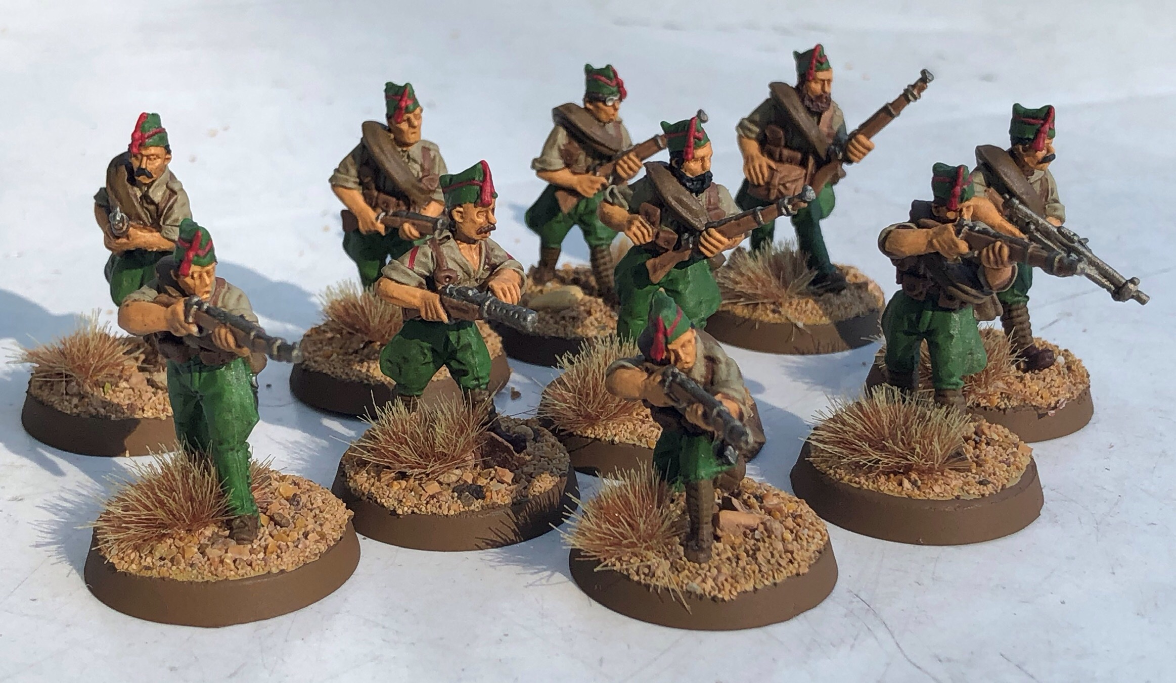 The Nationalists were a real hodgepodge of groups; there were disgruntled officers from the armed forces, Bourbon Monarchists, Carlists (for a different branch of the Royal Family), orthodox Catholics and the Falange fascist groups. Through luck, help from overseas and a propensity for political opponents to die in air crashes Franco managed to unite these groups under his control to bring down the Republic. Bolt Action was our chosen set of rules. I found a useful set of lists online and set about building a list – based on leadership from the Spanish Foreign Legion. https://www.wargaming3d.com/2019/02/08/wargaming-the-spanish-civil-war-in-bolt-action/