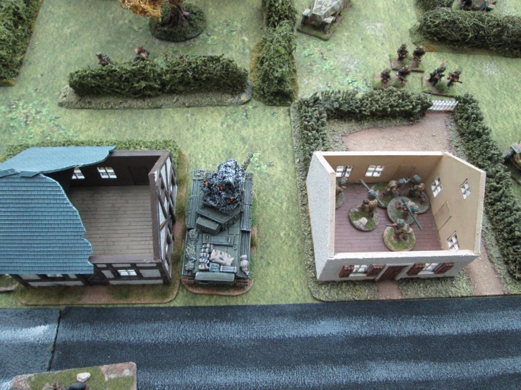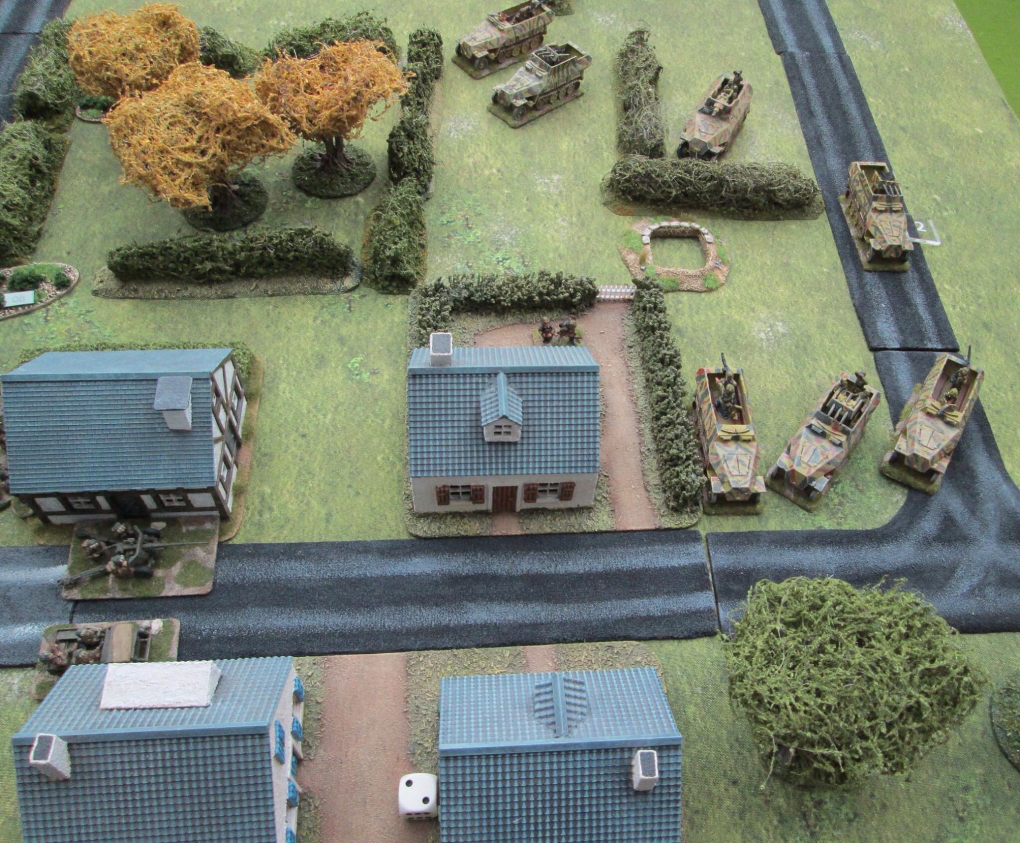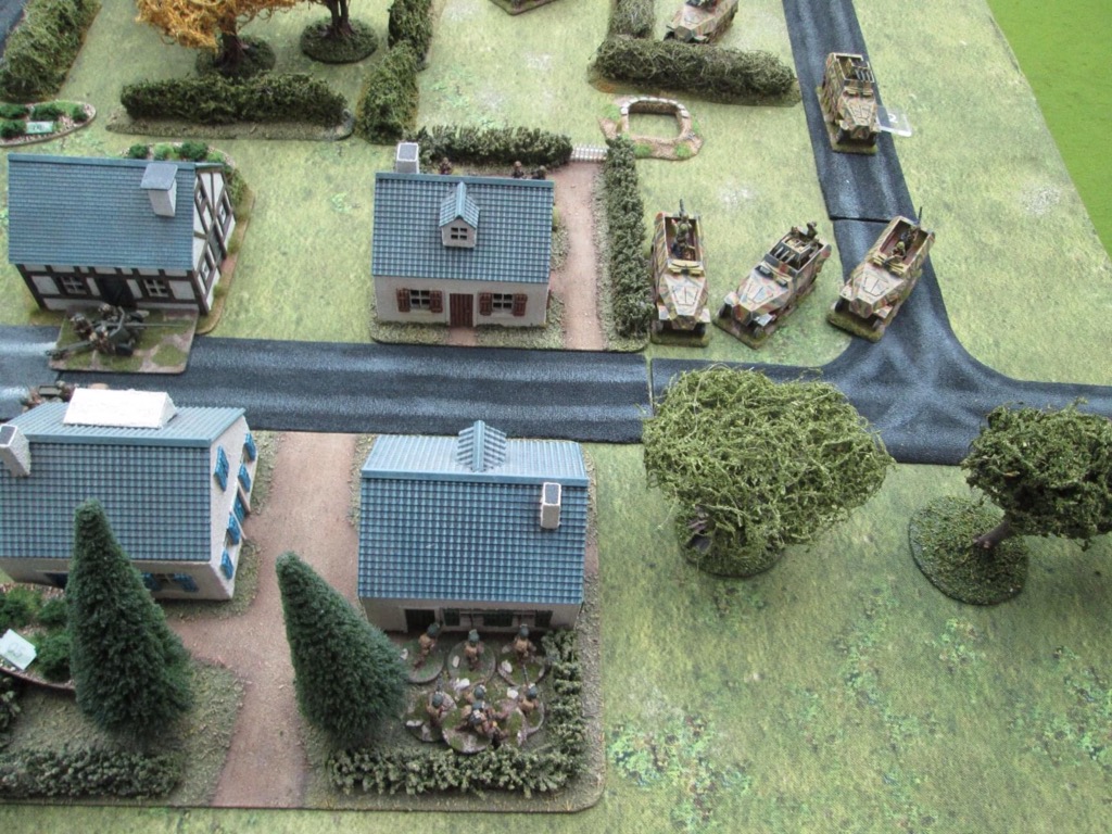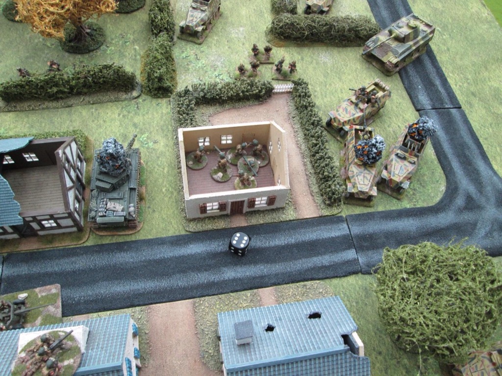 A lull in the firefight….the Panzergrenadiers’ morale has been shaken and they seek cover outside the ville.