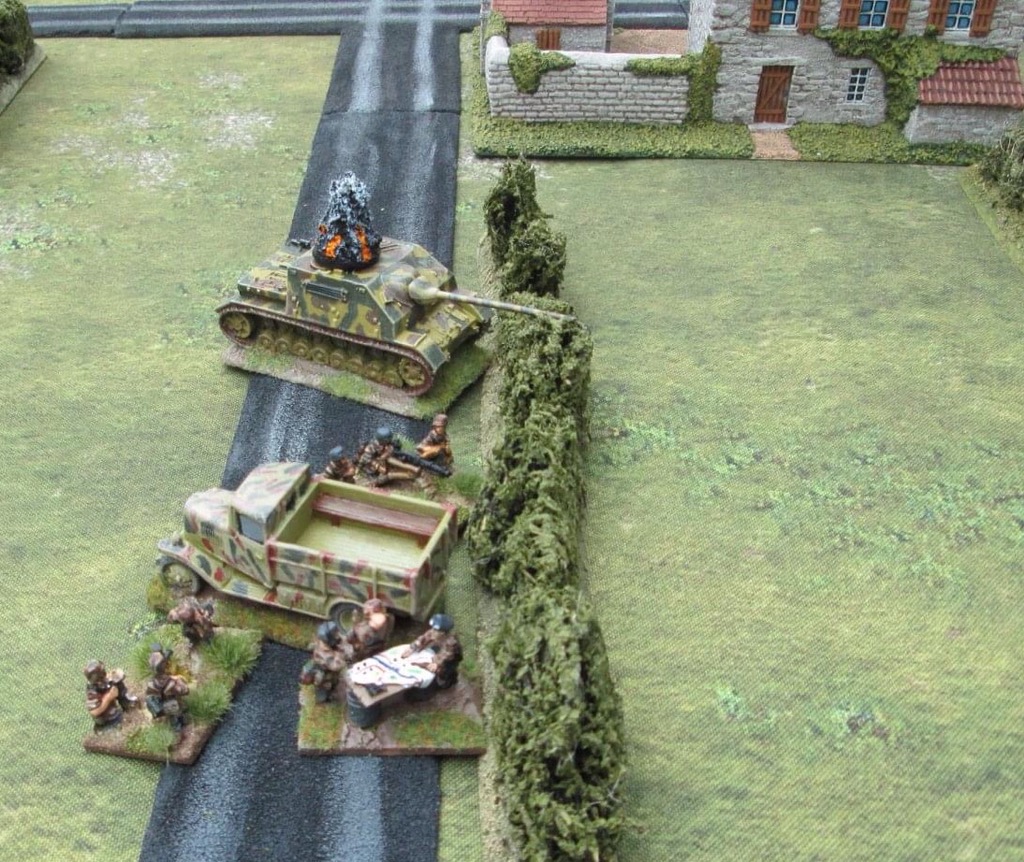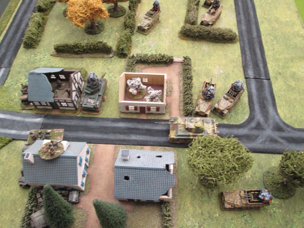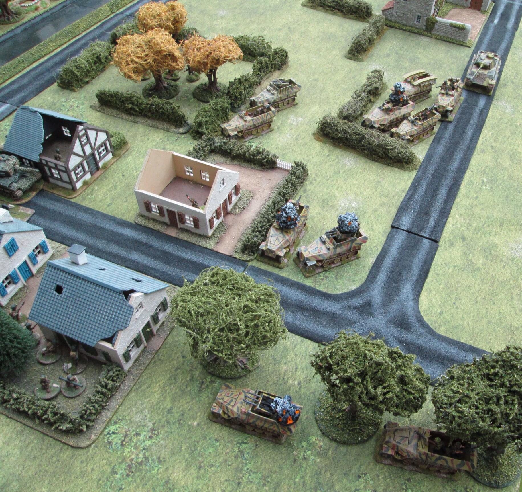 A lull in the firefight….the Panzergrenadiers’ morale has been shaken and they seek cover outside the ville.