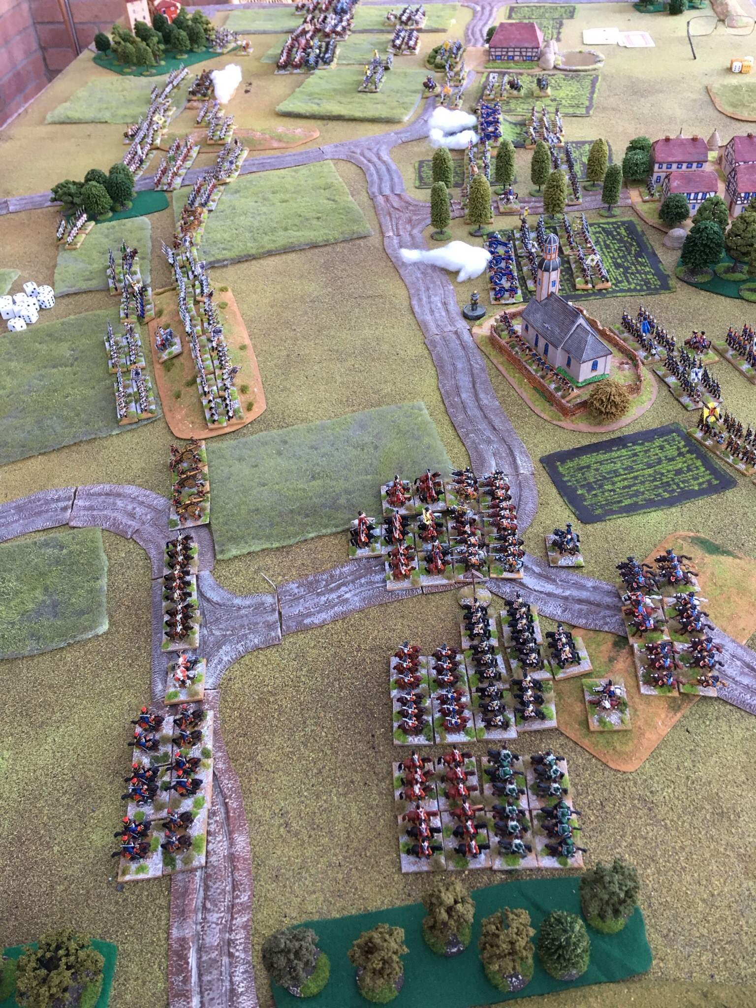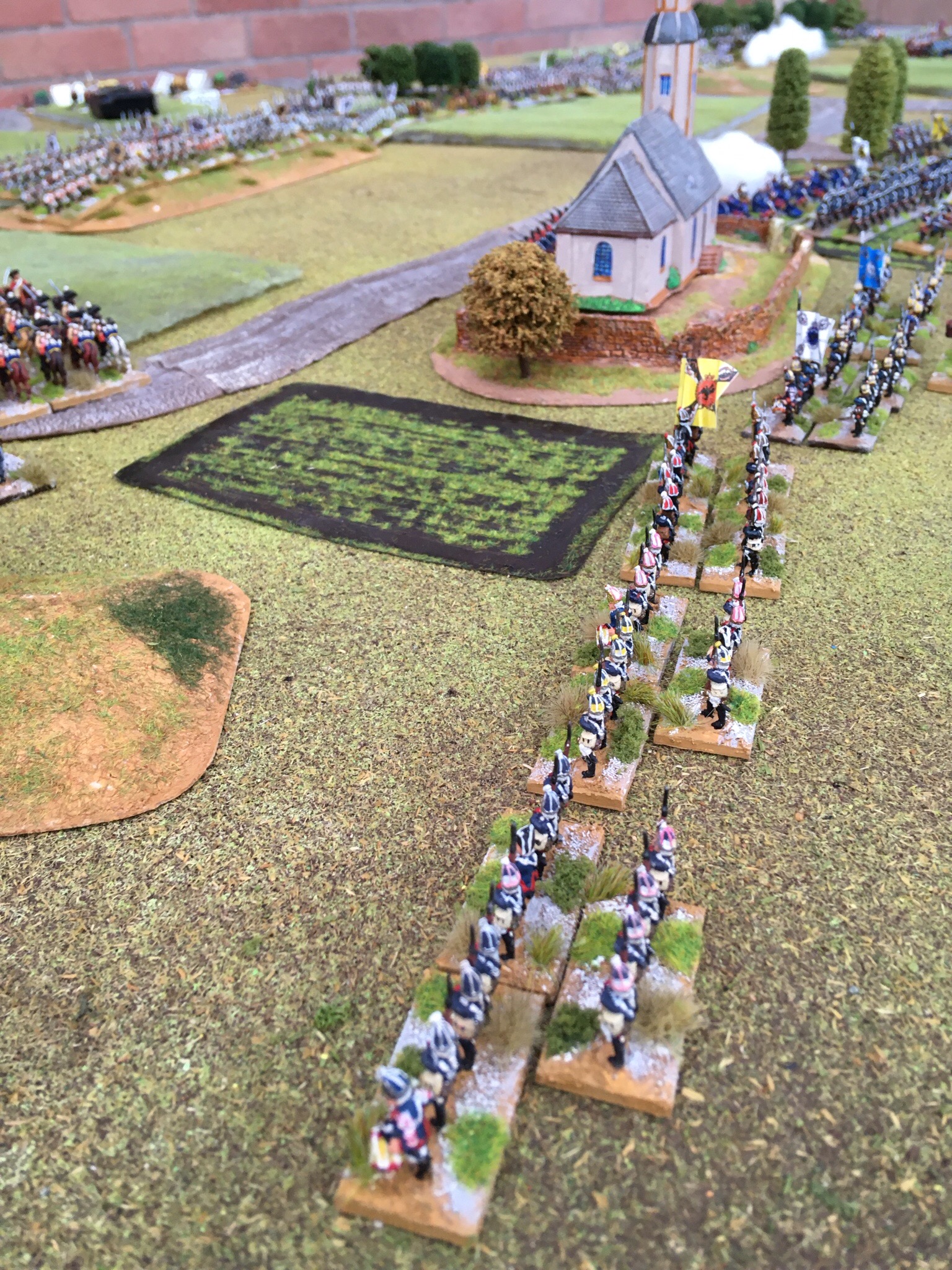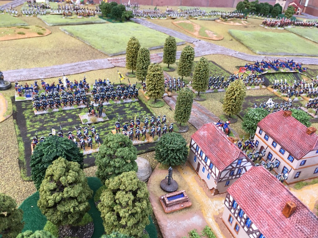 Above- the Prussian left anchored on a churchyard and those stalwart grenadiers.