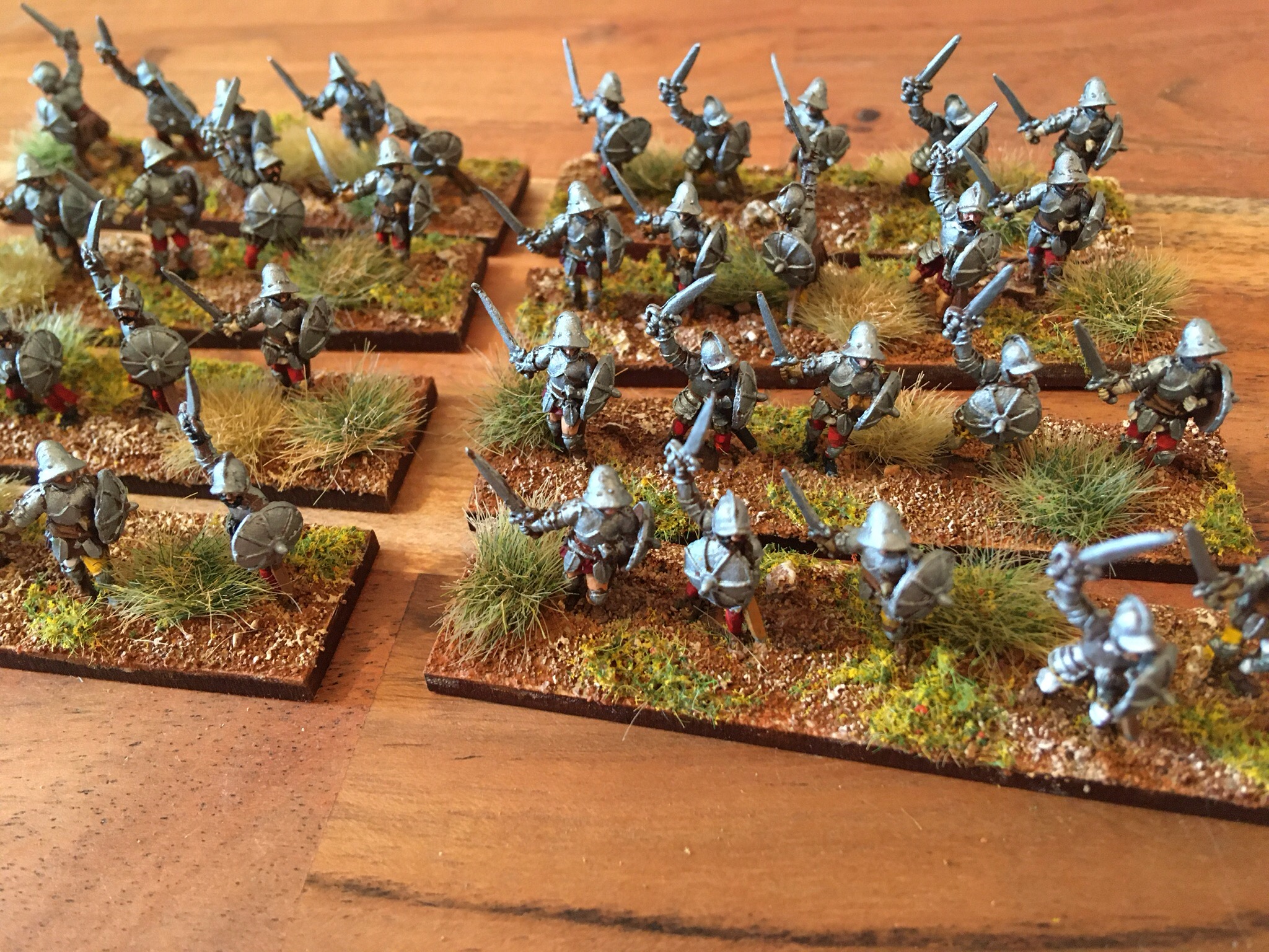 In another ten minutes, I’d finished another ‘manga’ of sword and buckler men. I remembered my original plan, to refight the Italian Wars with Big Base DBA, I had prepared more under the desk……..