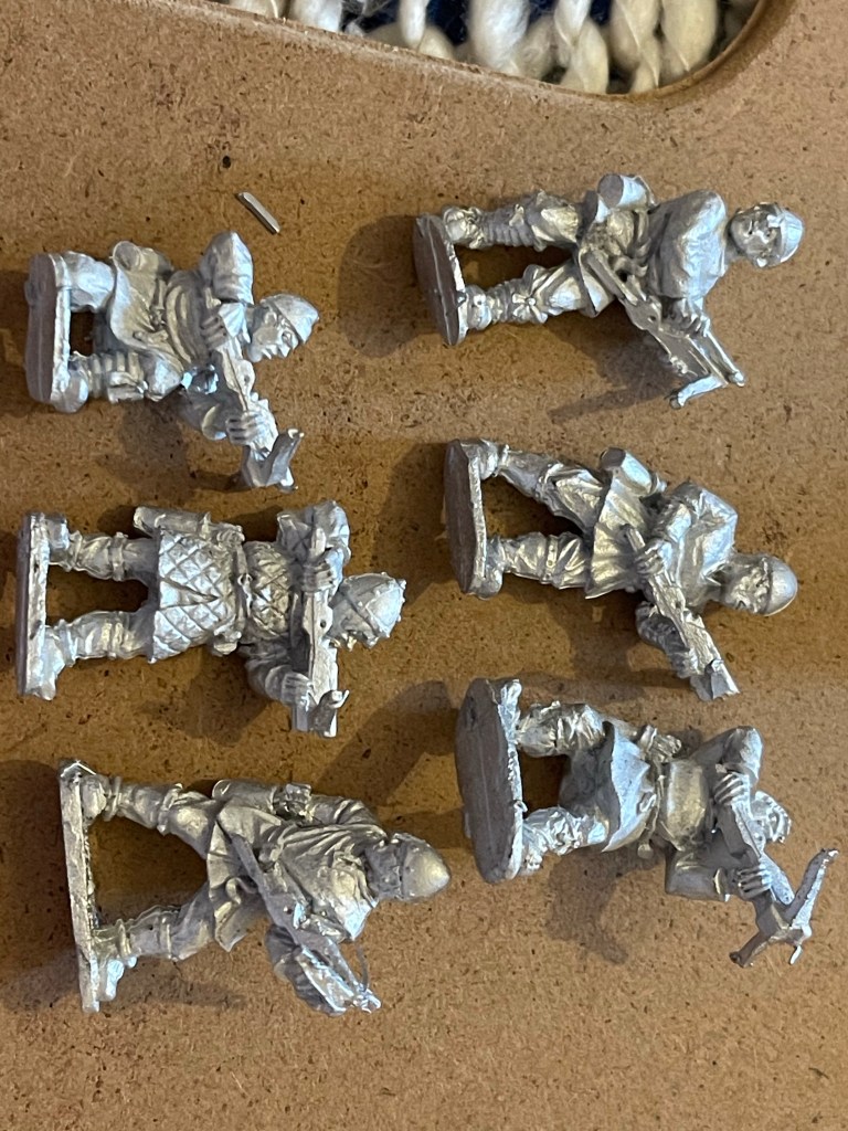 For me it was too late. Payday was imminent and the challenge was on. I went for the exquisite Matthew Buckley sculpts from Foundry. They are in Matthew’s “ chunky” style that I really like. They always remind me of those dastardly henchmen in episodes of Robin Hood. I needed four points of SAGA troops for the club night and I reckoned I could get away with thirty miniatures.