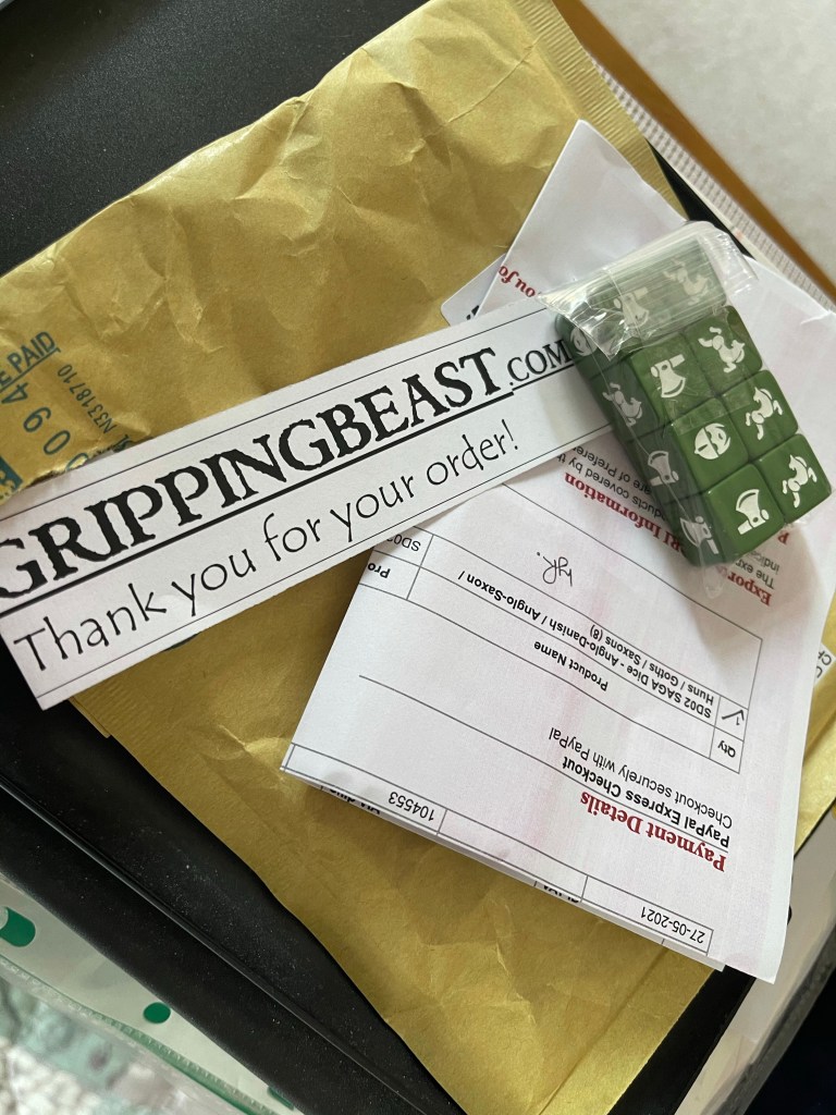 By Friday the miniatures were all based and contrast painted. Then the bombshell dropped, I would be playing with my Saxons so only my Norman archers would see the table! Gripping Beast sent me the required dice, again within three days of ordering. I love the modern world.