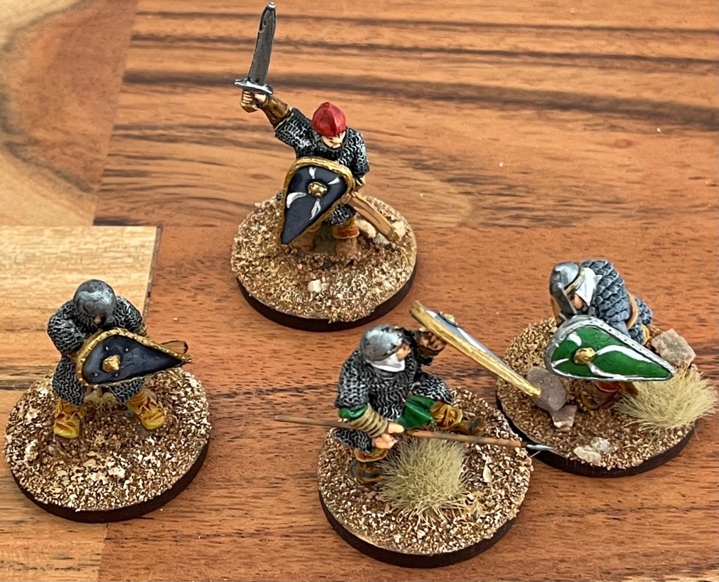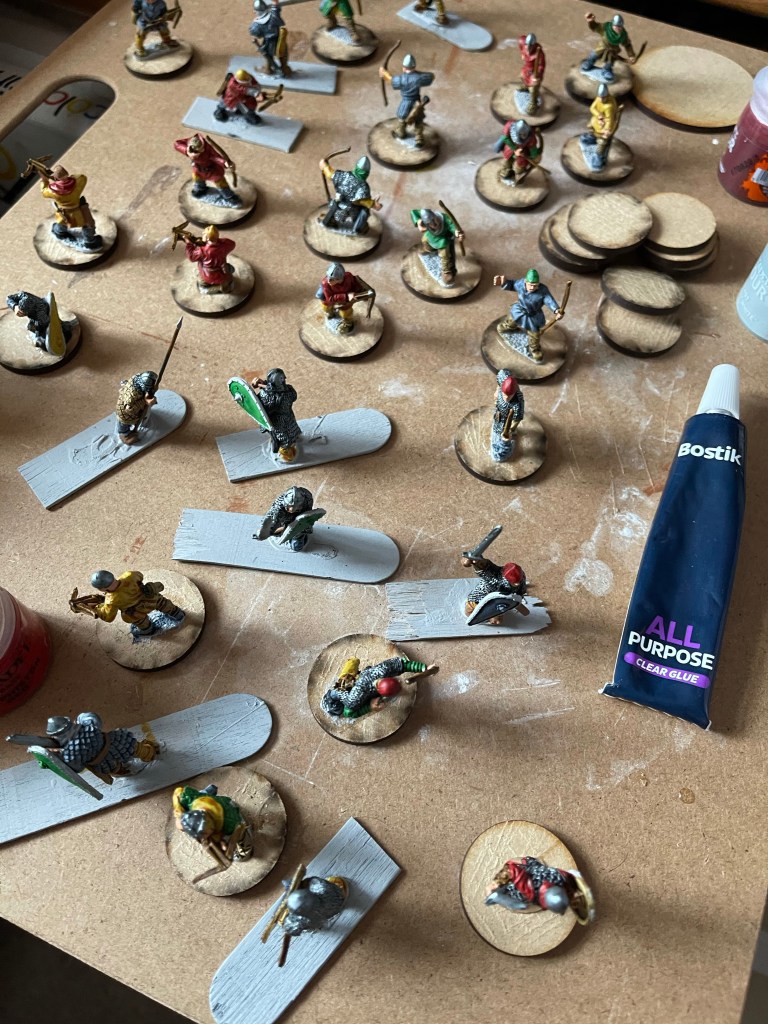 Wednesday night was my weekly visit to my mother’s house but that didn’t mean that I couldn’t do some glueing of the characteristic Norman shields. I’ve come to use Gorrilla glue for all my minis but I really don’t enjoy this stage. Now attaching the minis to their temporary bases is different and that means Bostik. In true Adrian Mole style I love the smell of Bostik. I didn’t end the session with a model aeroplane stuck on my nose but I was reminded of the 1980s Caerphilly glue- sniffing association of my youth.