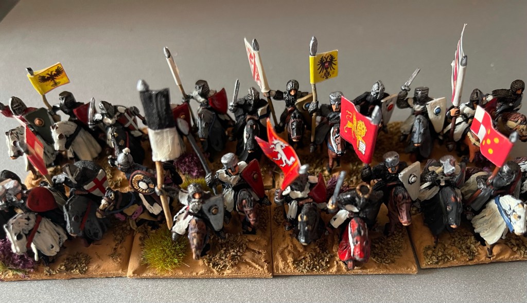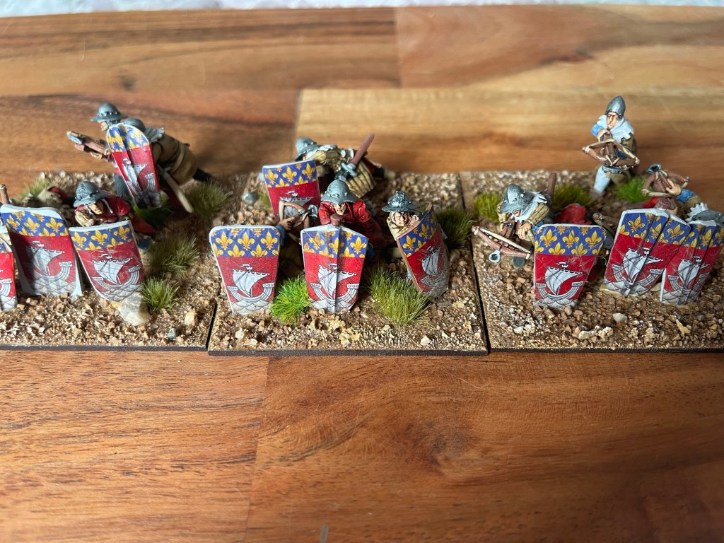 Longbows, the weapon of choice for the current crop of medieval L’art de la Guerre wargamers. I had an answer and that was crossbows. It was crossbows behind pavises! Not heroic but was a crooked stick containing any chivalry!