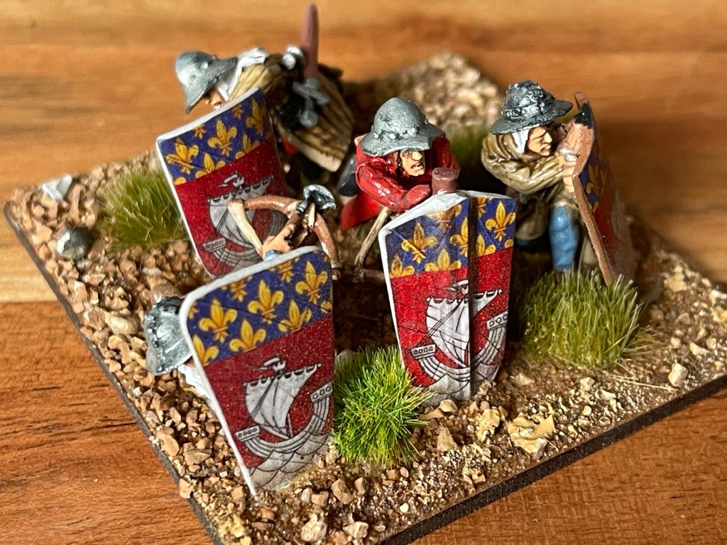 Very cool indeed. The shields (pavises – just learned yet another new word from you!) look stunning – I’m assuming decals? The bombard is cool as well. Just wondering how your figs did on eBay – and under what seller name (I’d like to check that out just for curiosity as I may eventually have to – God forbid – sell at some date before assumption of room temperature.