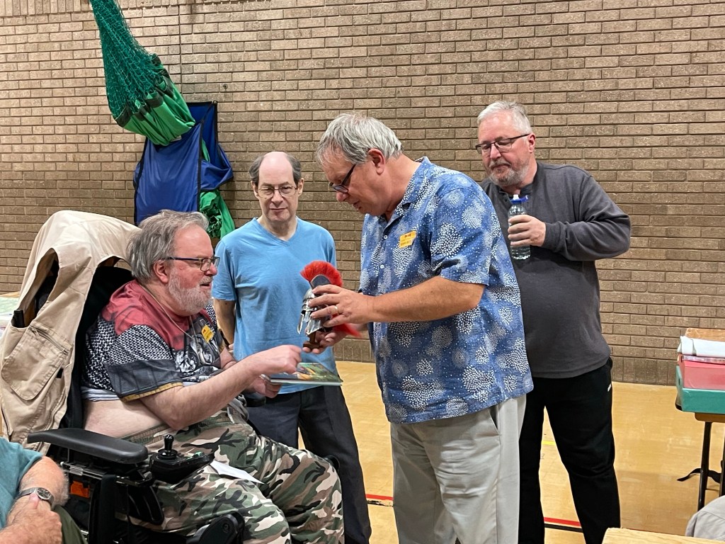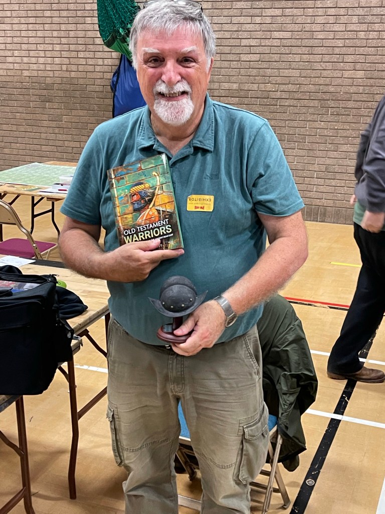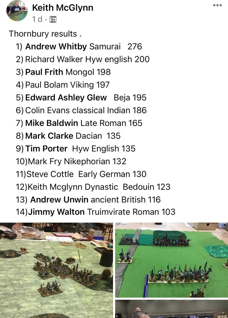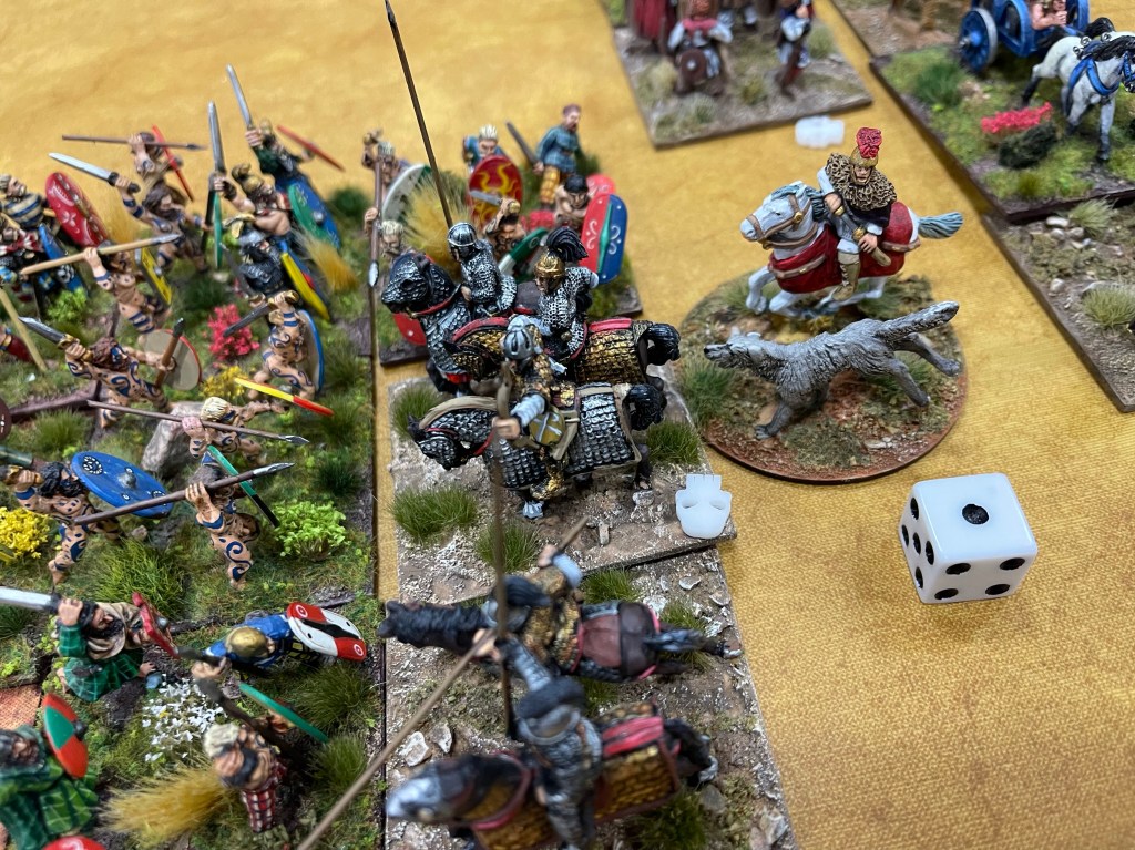 Mountain warriors made up Keith’s foot command….But, Keith had put all his faith into his impact cavalry. Acting in combination with archers and artillery, the Roman horse sliced through the Mounted wing. A victory for Rome to end the day!It was a tense gathering for the prizes but all were well deserved. I was happy with my placing. A hundred points adlg is great fun and my next army revision would change my heavy cavalry wing into a shoot light or medium horse Hun corps.Paul Frith stole third place with his immaculate Mongol host. His style of play was described as “ trying to catch quick- silver in a gloved hand!”Great brushwork from Paul the MongolSecond place – Richard grabs Keith’s helmet surrounded by adoring fans.But it was Weston Dice Stud Andrew who won through in the end, even defeating Tim “ the Madaxeman” Porter in the final.It was time to pack up and leave the field. What a great day. The hundred points format really works and it wasn’t a push to get three games in over the course of the day.As I left the car park, I really felt that normality has returned! Our thanks to our generous host Keith and we look forward to many more tournaments of such quality!Join us next Saturday as three Dice Studz head to Bristol Independent Gaming for SAGA Ironman! What could possibly go wrong? Photo from the 2019 trip to The Portland of the West Country!Colston returns!
