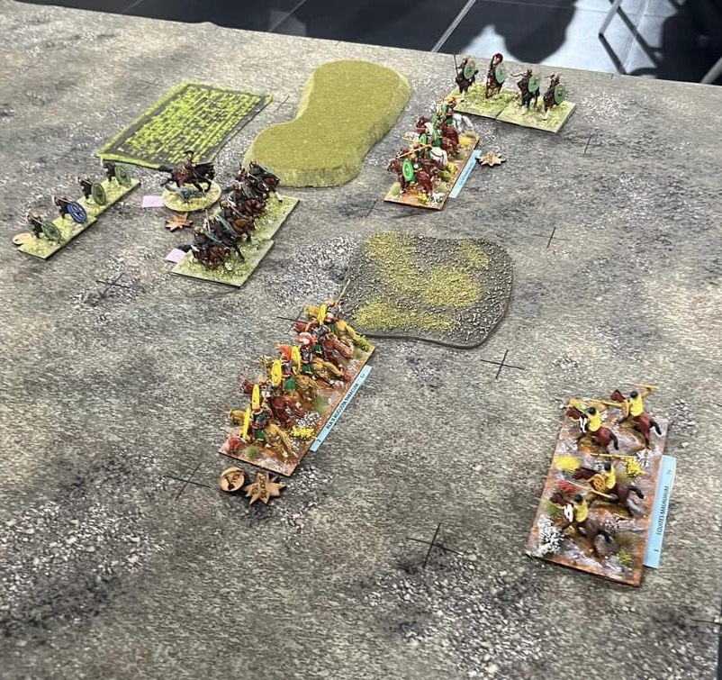 The Auxiliaries then formed Orbis and Antiochus renewed his attack without success. My Tribune Domitius Sabinus led a Legionary Cohort in support and their attack managed to disorder the Auxiliaries in orbis. A unit of Moorish light horse which had been chased from the field by Cohors III Bracaraugustanorum, returned and attacked Antiochus’ horsemen in the flank. Antiochus was lightly wounded as he had been at Bedriacum.
