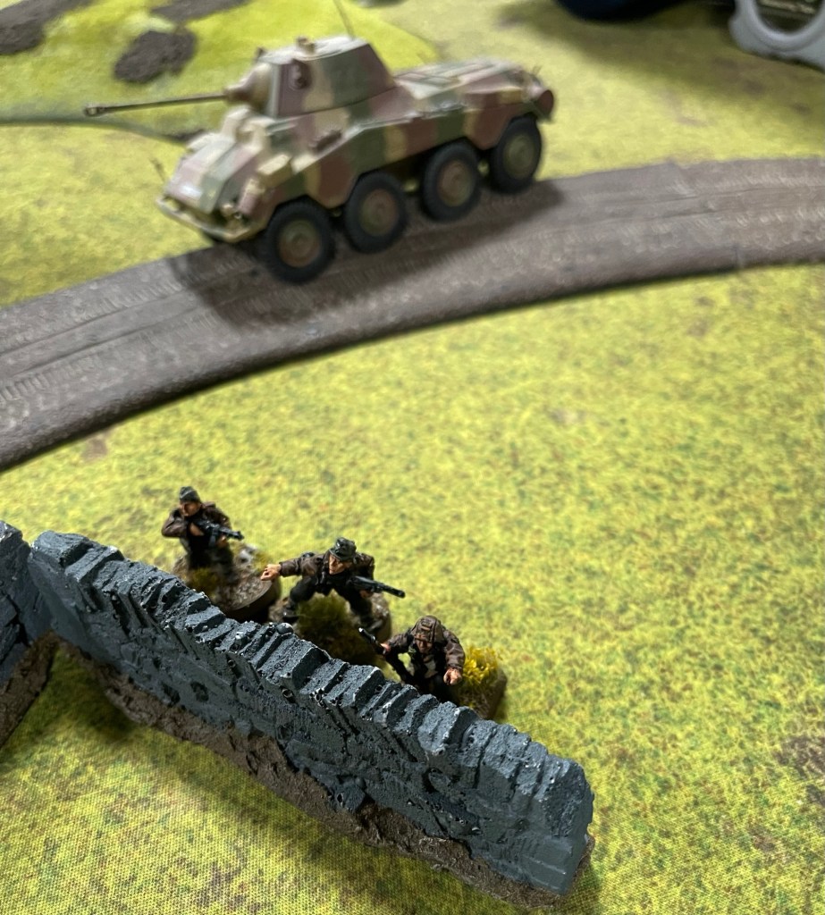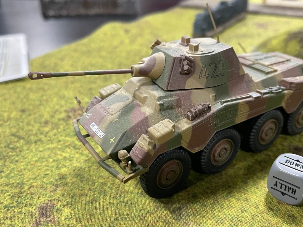 I’d quite forgotten I’d even bought a greyhound armoured car. I did feel bad when Dave immobilised my car with his Puma on turn two.