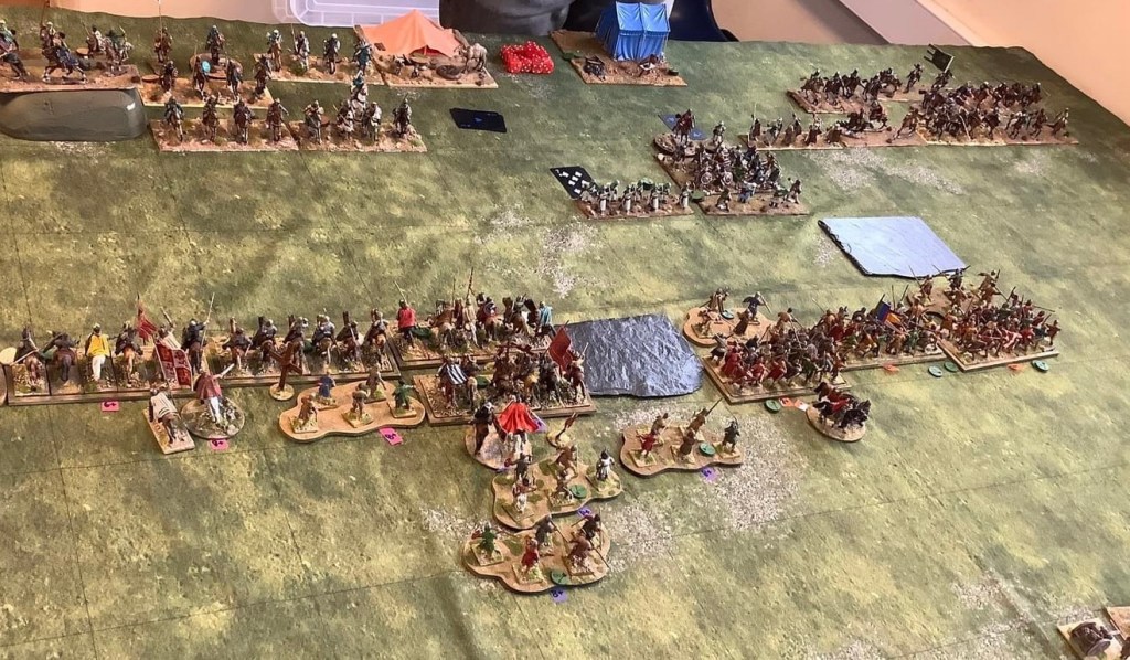 A great start with my winning the scouting, as I did on every game. Steve only had 3 commands so I could see him place his fortified camp with infantry and both mounted commands to the right of that. I matched his infantry with mine and also loaded all my 3 mounted commands opposite his.