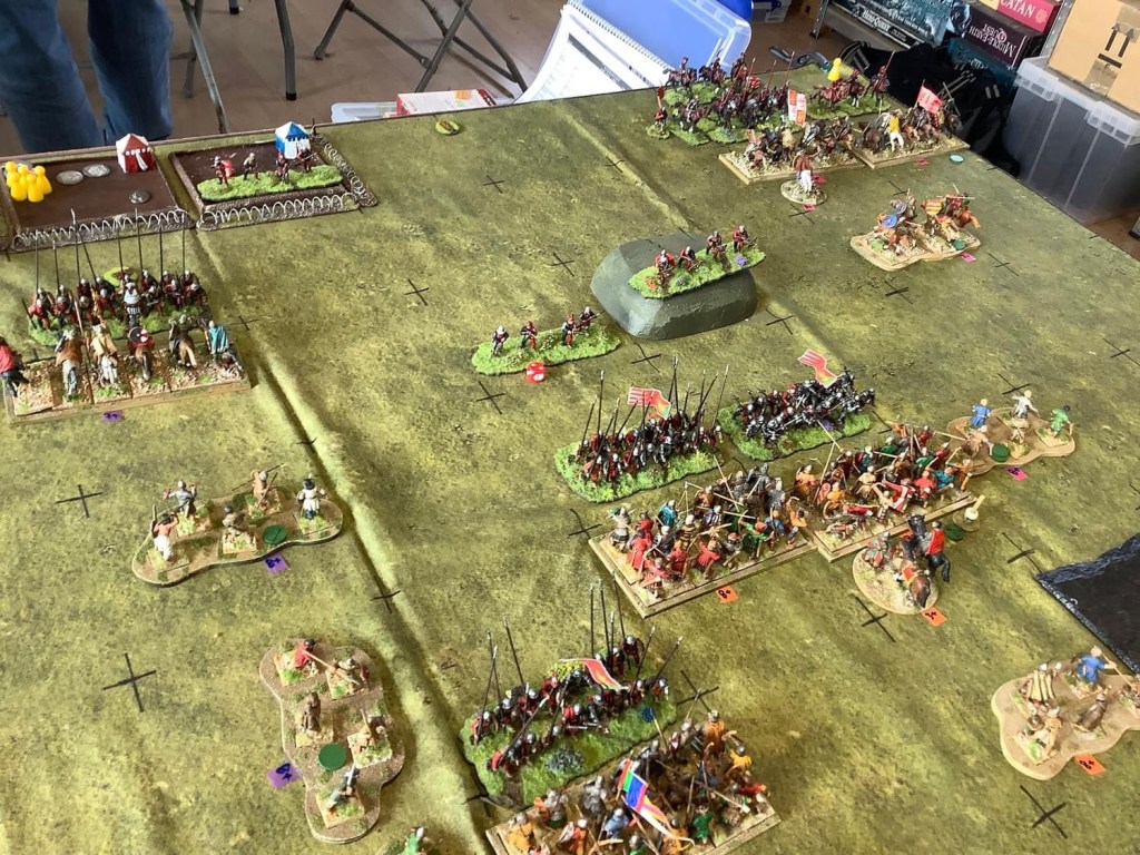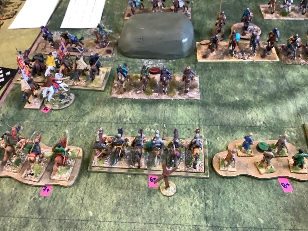 An interesting combo of knights with LC support. Infantry was spear, Crossbow, billmen and LI. Wonderful painting and a beautiful looking army.