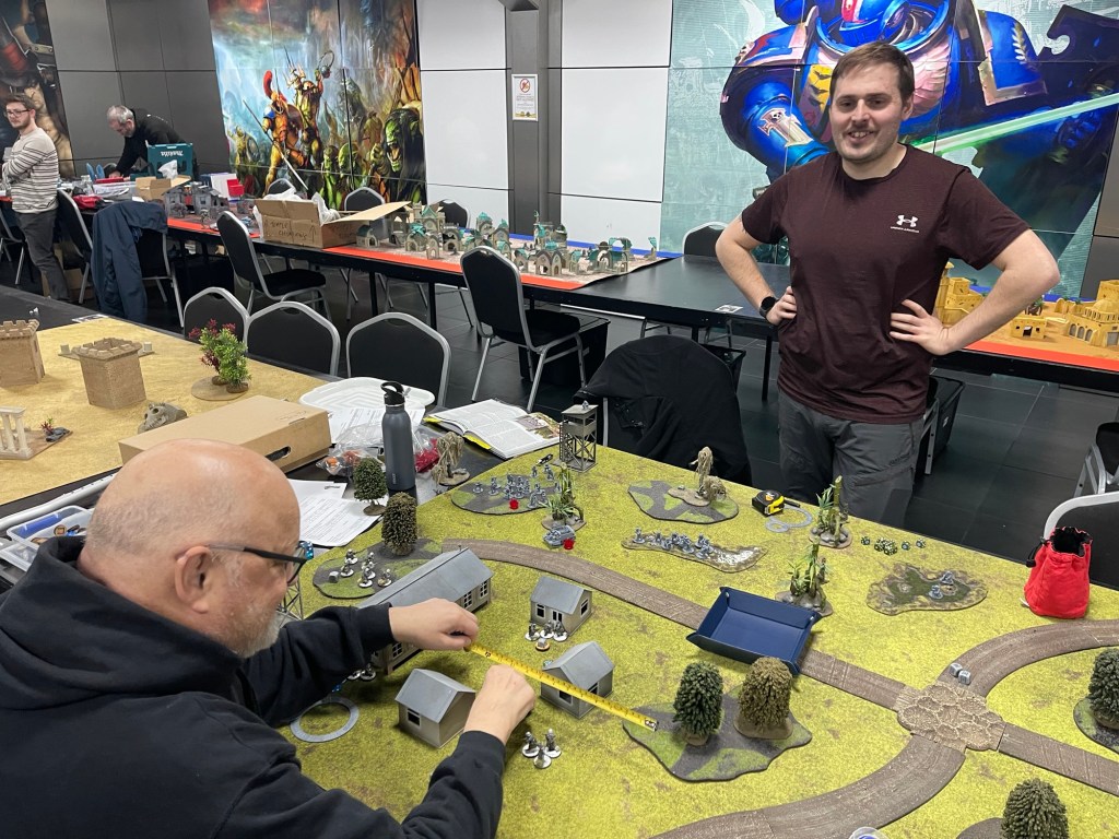 I was hooked. We were “ assisted” for the second half of the game by Keith. He helpfully positioned the incoming artillery strike and declared my machine gun fired obscured. After spending fourteen pounds on his Christmas meal, he started to see things my way. I was indeed behind hard cover and had won convincingly!!! He’s not cheap but he is thorough! Join us one week at Cardiff‘s Firestorm games for more dice related athletics!