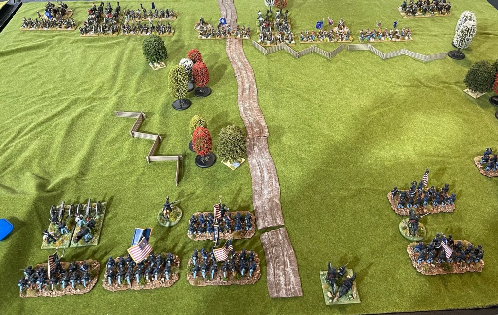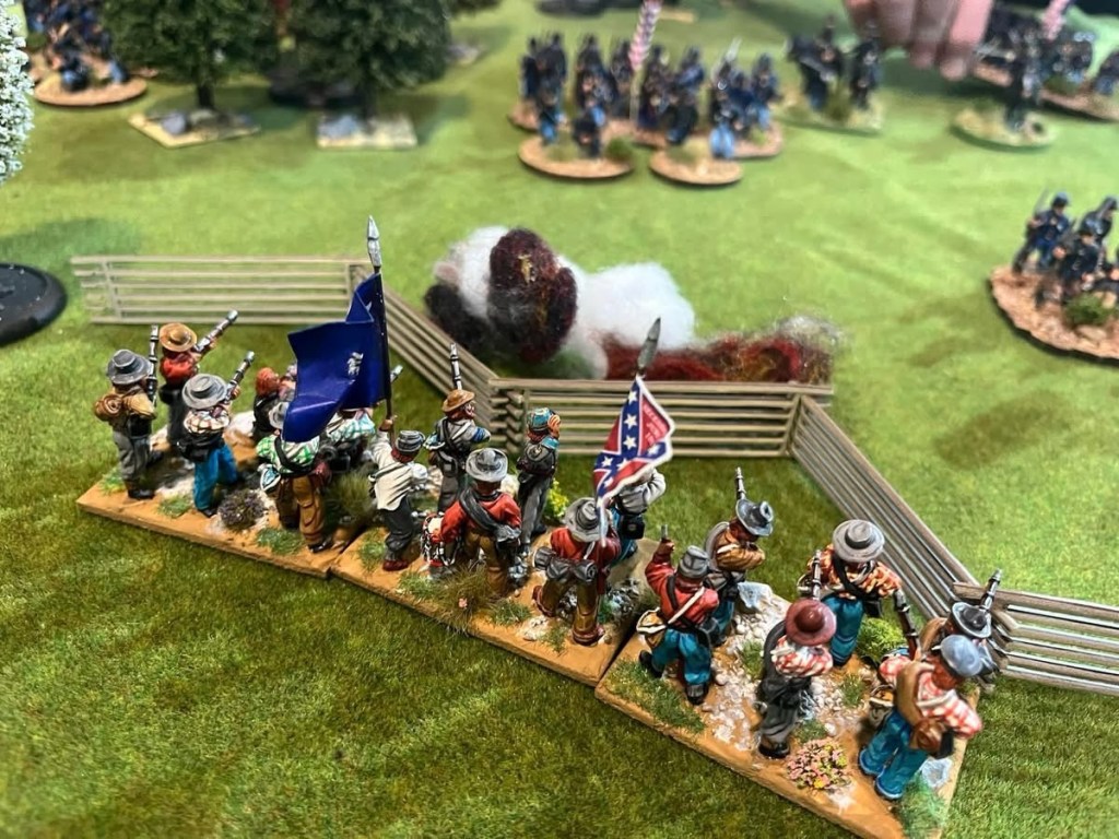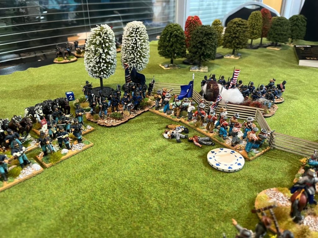 I do hope you enjoyed reading of our refight. Mr Lane was in an unenviable position with the South, just like the actual Southern commanders. The Black Powder rules gave a quick hassle free resolution and the ranges and ratings seemed to reflect the historical performance on the day. The next time we play we shall use the o.o.b. From version two of the Black Powder set. The Command and Colors scenario gave a good approximation of this phase of the battle though.