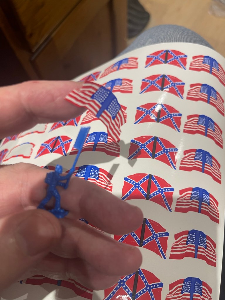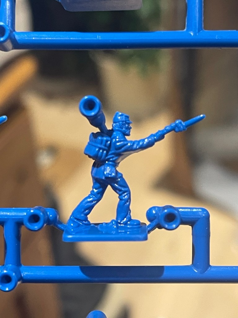 However, one game trumped all the others and try as I might I haven’t been able to find an image of it. Suffice to say you had a pistol that sat in a mound on a moulded battlefield and you actually shot the “ sheriffs or bandits.” I played it til the springs game out and the moulded board was flattened. One particular shot to hit a target required such skill, that there was real kudos in catching the targets Stetson. And to take it to the next level, I painted mine in the uniforms of the American Civil War.