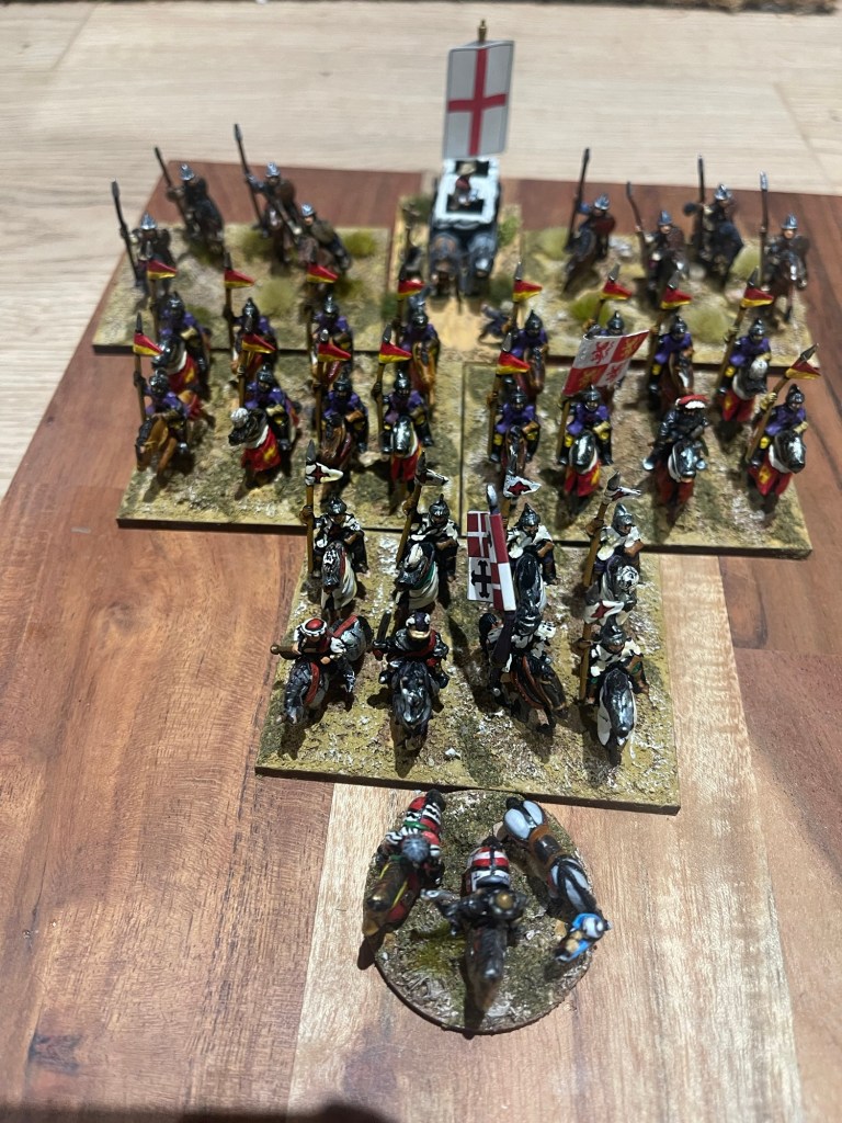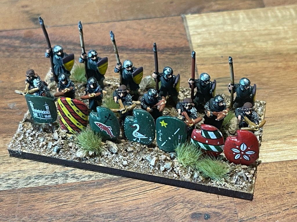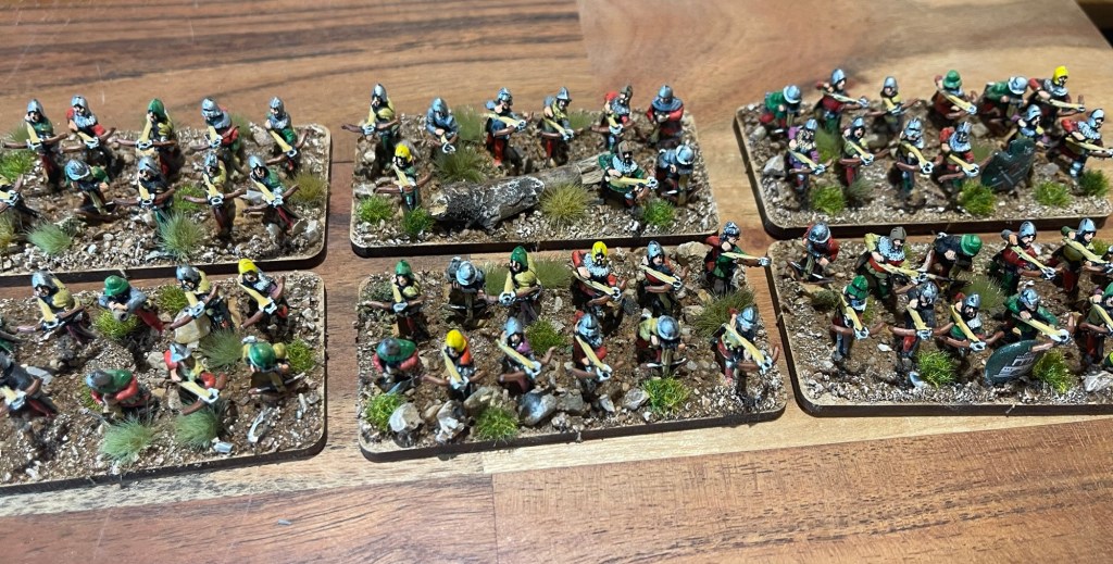 To summarise, we now have the table size ( based on Commands and Colors ( 13 x 11 hex) and armies based on roughly 8cm wide units in 15mm and roughly 12cm wide in 28mm. An example of such an army for “Imperia and Colores” is below.