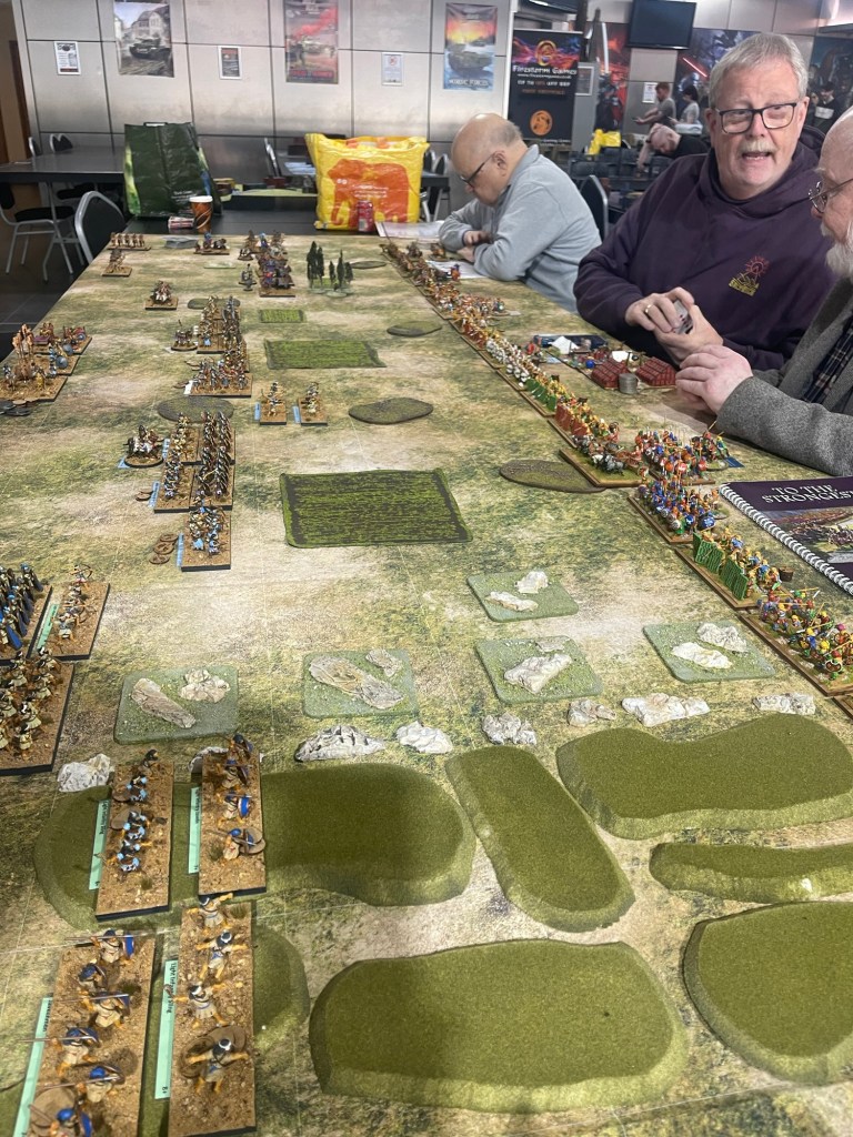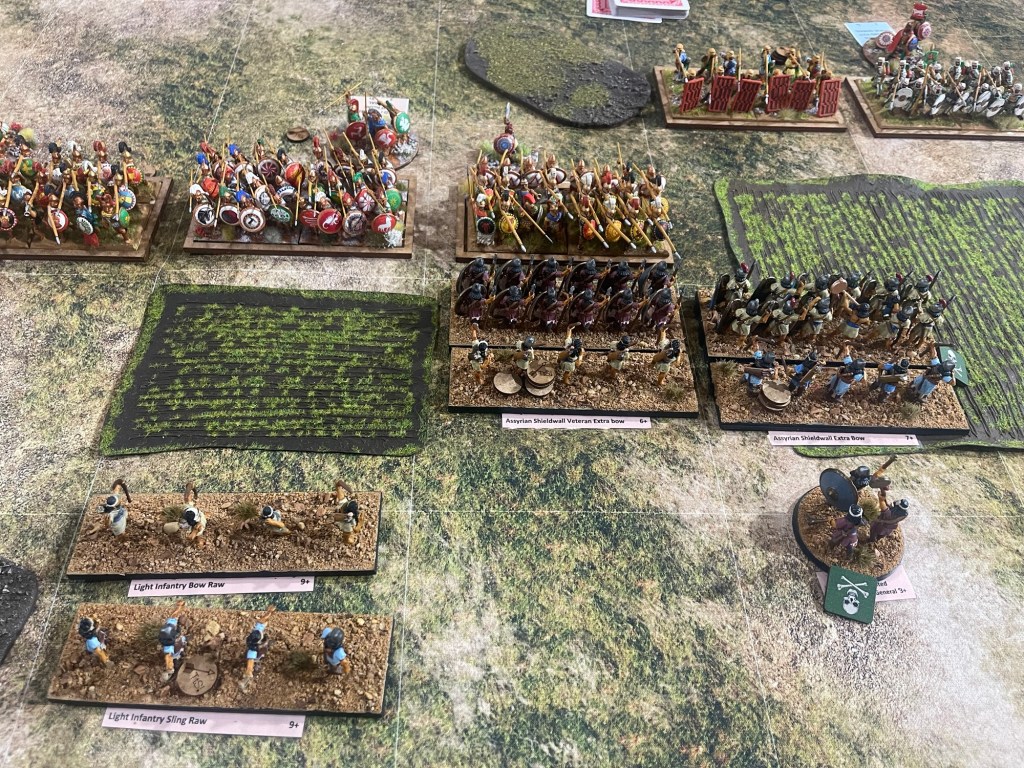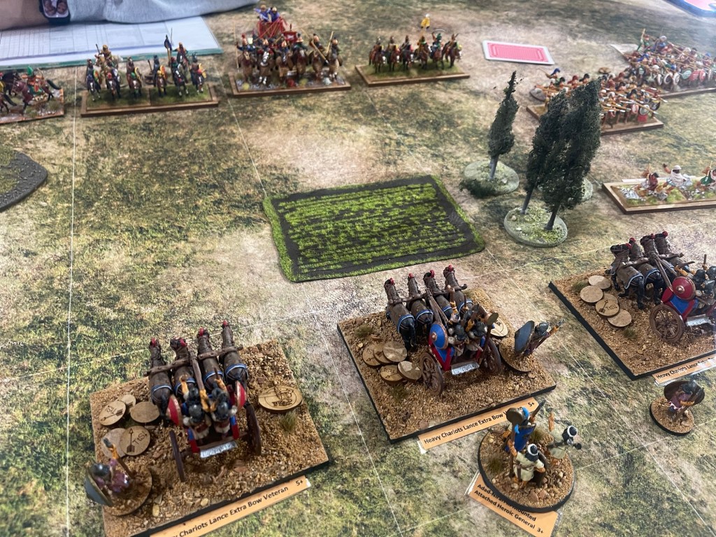 Mike Lane and James Churchill were on great form. A new mat and interesting terrain. The Assyrians and Persians faced each other across a plane with mountains nearest the camera!