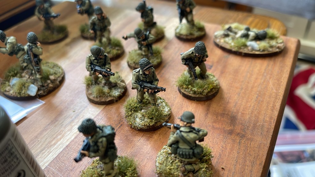 After much deliberation it would appear that Bolt Action will be the ruleset of choice. I think that’s enough American infantry for a decent game but I have the German reinforcements lined up on the paint table.