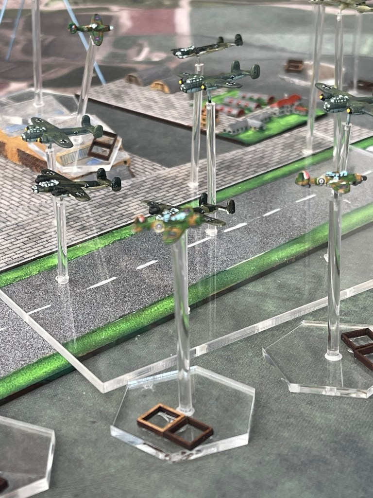 Well what did learn? We had used the “Wings at War” “Scramble for Britain” air rules once again, though it was Mike’s first foray using the rules. I must say, somewhat ruefully, that he soon caught on! We found tight turning Spitfires and to a lesser extent Hurricanes were better able to get on the tail of my Bf 109 fighters. Their advantage in making reverses was insufficient to get around on the tail of the Brylcream Boys involving as it does a dive and climb back up to engage the enemy fighter.