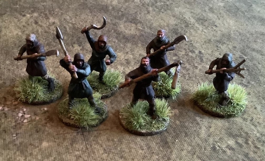 Finally, a group of 6 green levy with improvised two handed weapon. The idea was that these bad boys, (well actually bad very old and decrepit men) could be used to go off and grab objectives, plus if I lost them, it wouldn’t matter.