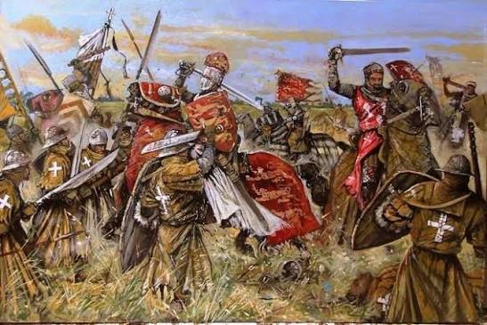 The list consisted of a dismounted Baron with escort of 5 foot knights and banner (gives bonuses and extends command range). A friend who had played said that he made his Baron part of the mounted contingent but he went off into the blue yonder as knights do, so the rest of the army lost the benefit of his command abilities, so on shanks’ pony he was.
