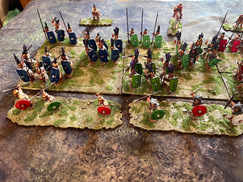 As it happens, I purchased the new Thureophoroi figures from Victrix at Warfare so that would do for the Pergamene infantry. This also inspired me to get painting, they soon came off the production line, not amazing but workmanlike enough to get on the table.