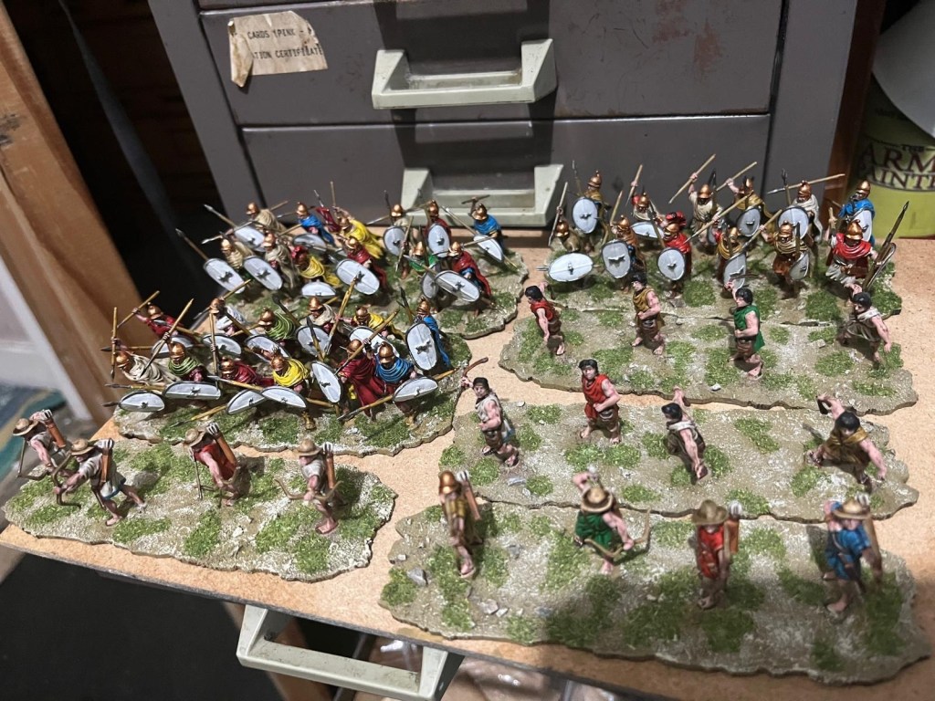 The Romans were easy as six months earlier, I had been clearing out my attic and discovered a fully painted Renegade miniatures 28mm Republican Roman army, I had forgotten I had. Only 6 quincunxes were in the attic, but I could borrow a couple more from the inestimable Mr Michael Lane who generously offered to rebase them in the style I had done so.