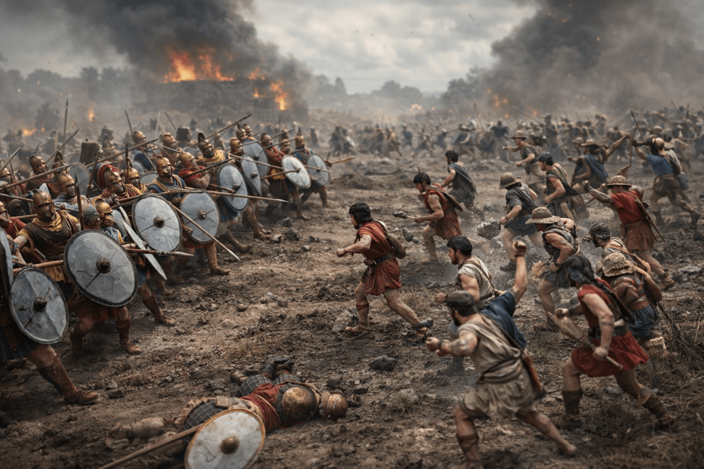 According to Livy “The morning haze, which as the day advanced lifted into clouds, obscured the atmosphere, and then a drizzling rain coming with the south wind wetted everything. This did not inconvenience the Romans much, but it was a serious disadvantage to the king’s troops”