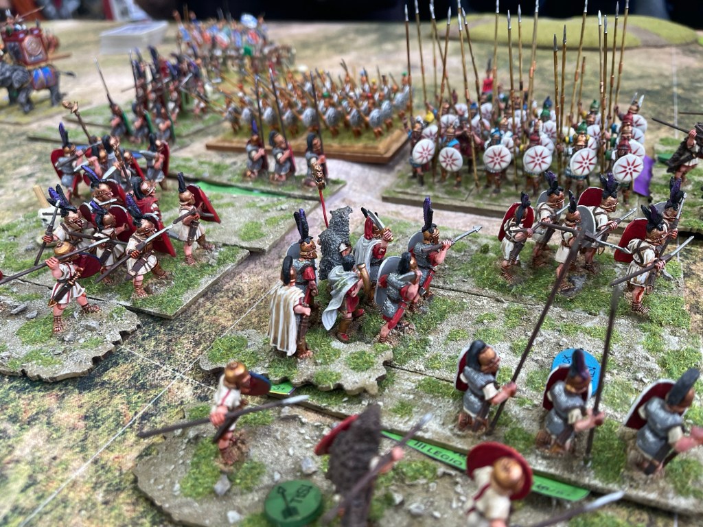 In contrast the pikes under Philip Master of Elephants (John Gallacher) rumbled forward but Antiochus (James Churchill) was a little tardier with his cataphracts. In contrast the veteran legions surged forward throwing their Velites forward.