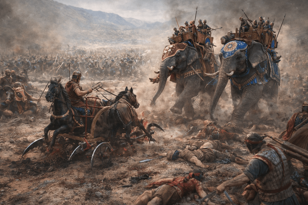 Seleucus went forward with his chariots, and the centre one was destroyed by Velites. Or so he thought…Eumenes opened the envelope which read as follows