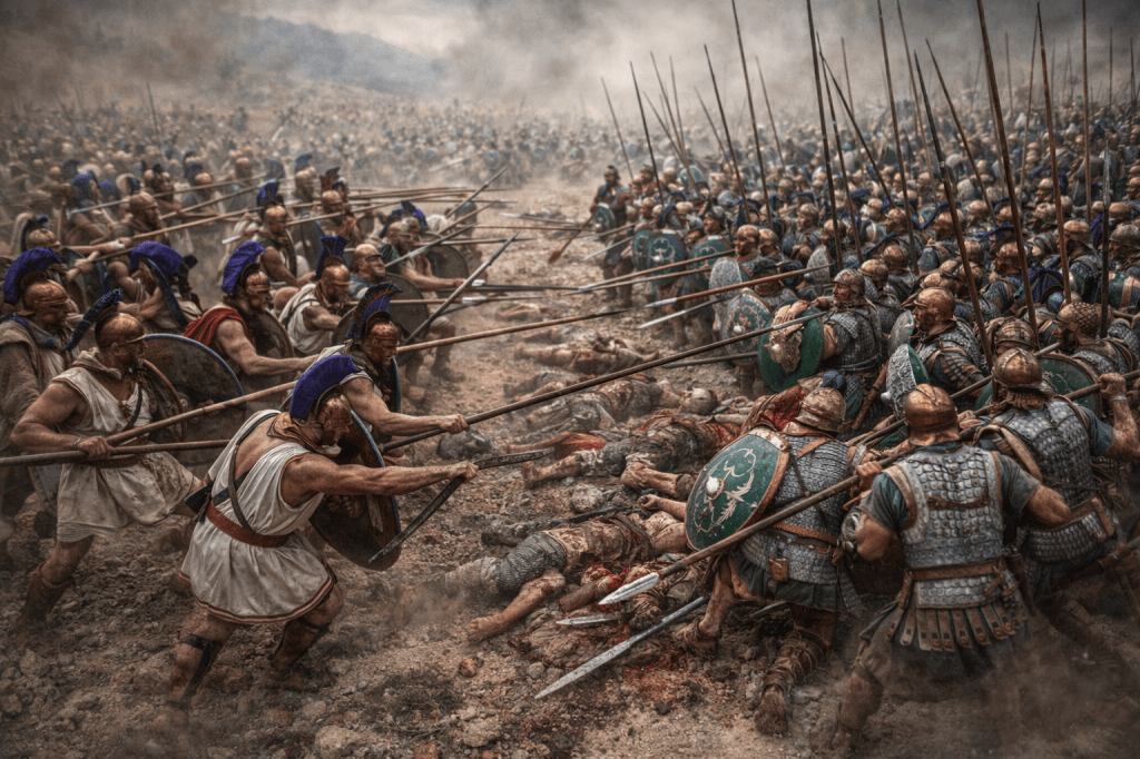 The Roman left was struggling, the loss of a legion to the cataphract charge had left a massive hole in the line. There was half a legion left on the far left, but it was overextended and isolated. All it could do was to pull back from contact. Fortunately, it still had a general to help. The mist that covered the battlefield was making command and control and nightmare!