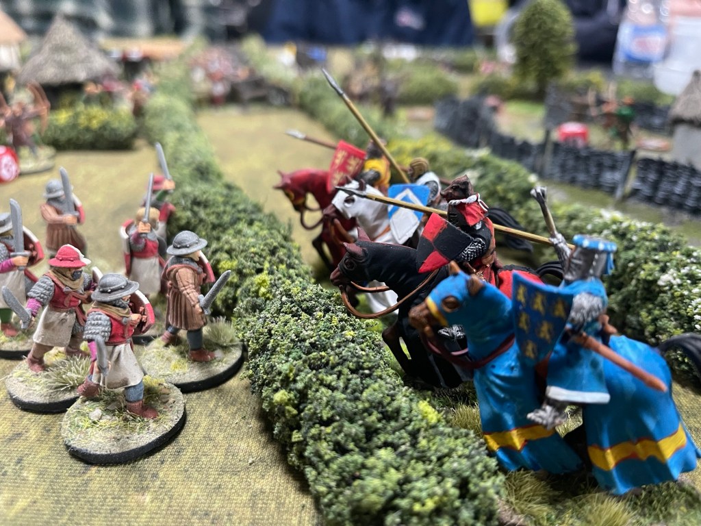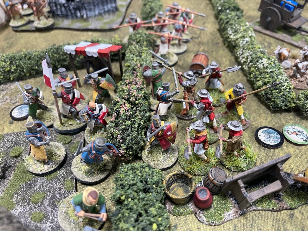 There is of course a definate decline in the number of miniatures that makes up an “ army” of course. Last club night we were treated to a run- through of Barons’ War. Fifty figures a side is definately economical but Sid did decorate the table with lots of period flavour.