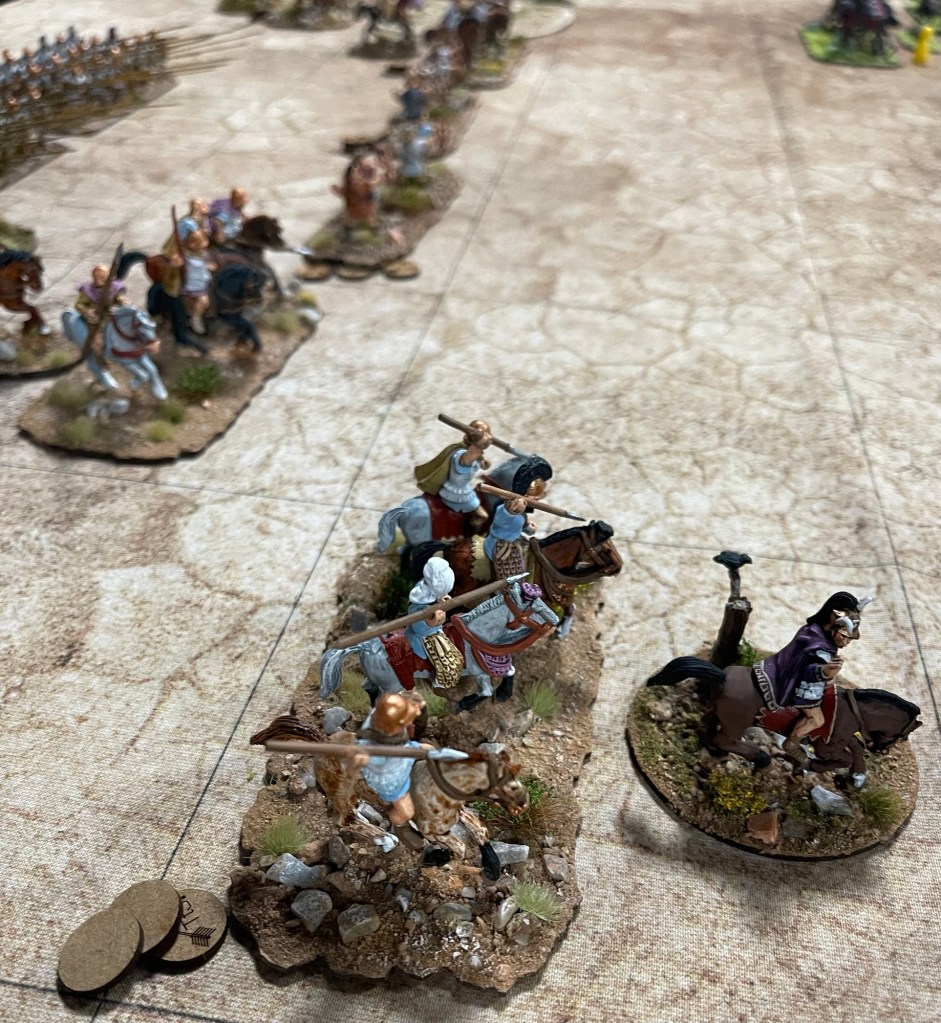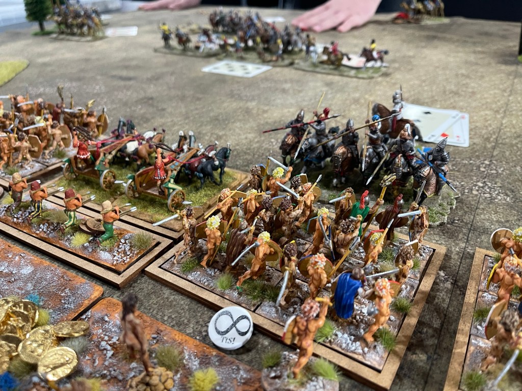 The Venetian foot in the centre looked like the only chance! The Bactrian pikemen started to fall and then the general was slain! I actually had the battlefield ruse “ Patrocius”. which would have saved the commander, but I was too busy trying to plan another Late Roman build.