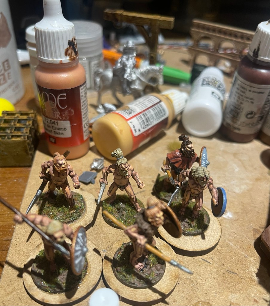 So progress is being made; the plan is to lightly sand a good number of :Midgard: bases on which can be placed single miniatures. I was pleased with the potential look of the above foot skirmishers.