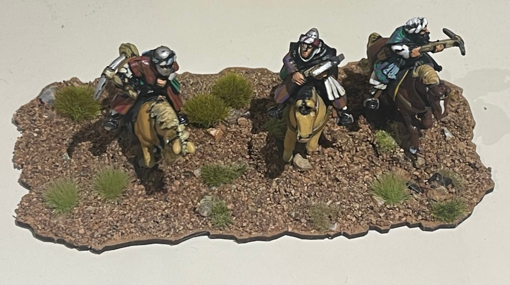 Three light cavalry on one base seamed a little packed? I could always use two such bases with four minis? Heavy riders will definately be on two such bases, one behind the other.